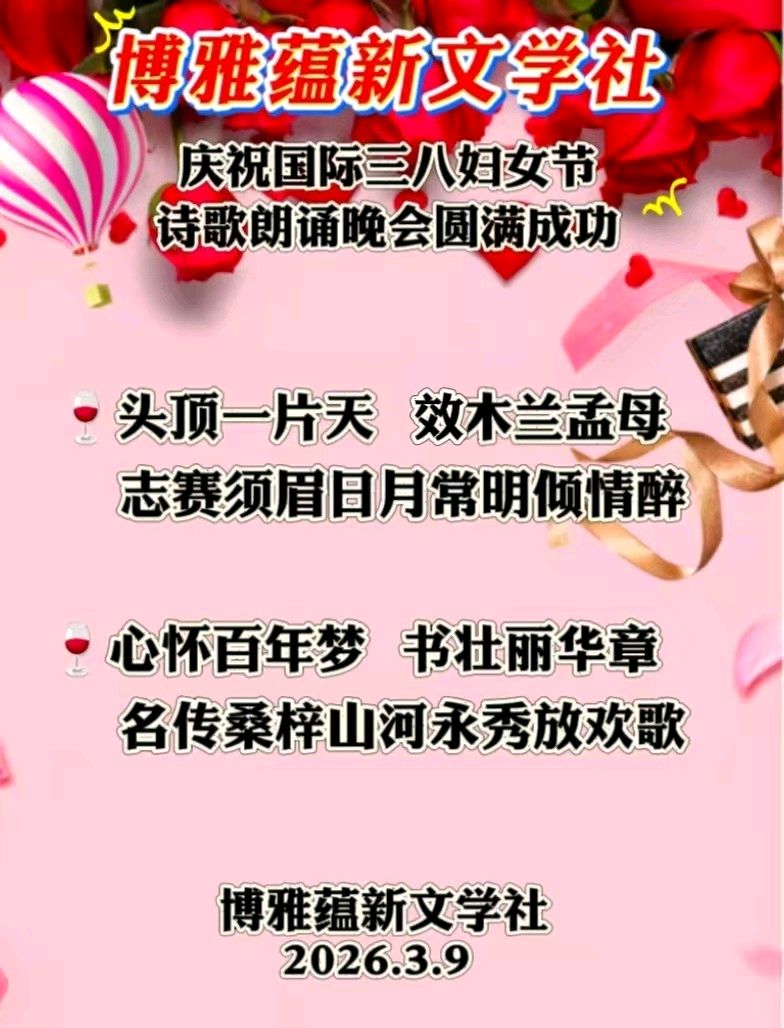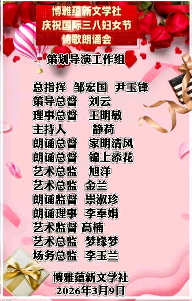 《博雅蘊(yùn)新文學(xué)社》慶祝國際三八婦女節(jié)|詩歌朗誦晚會圓滿成功?贊詩友及朗誦家|作者/博雅蘊(yùn)新星河共渡:墨香深處是故鄉(xiāng)作者/博雅蘊(yùn)新(云南-鄒宏國)