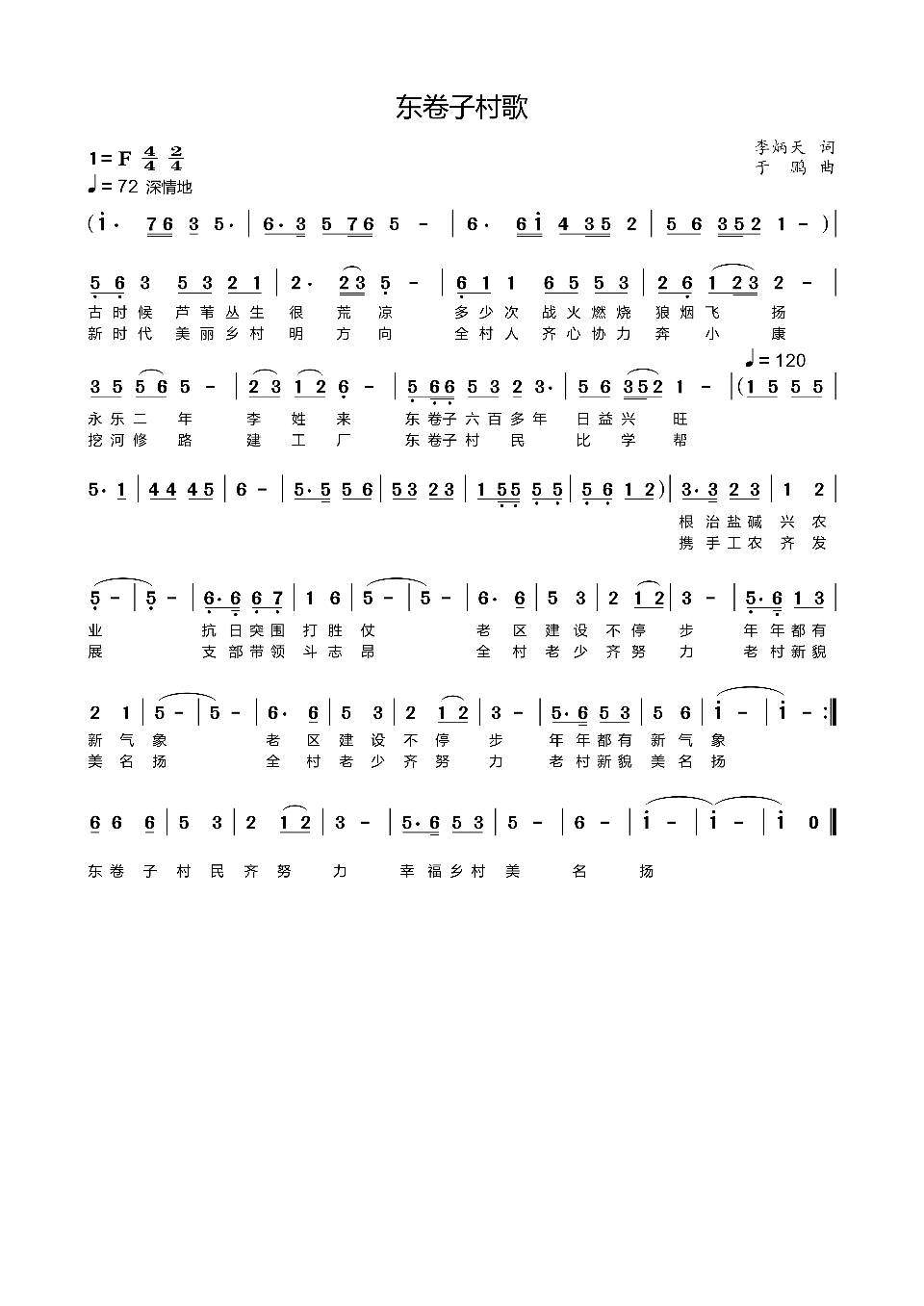 《東卷子村歌》 李炳天 作詞 于 鵬 作曲