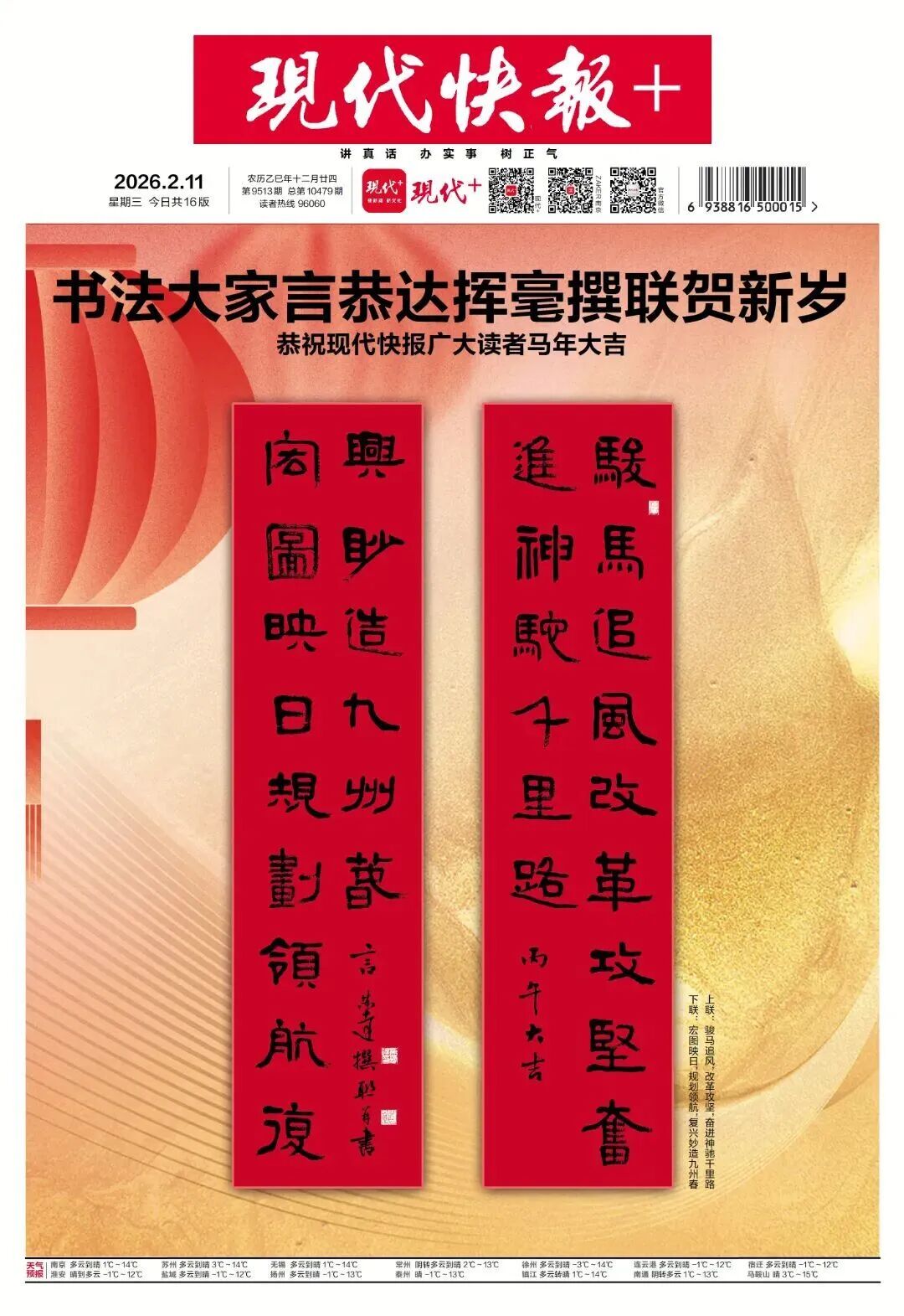 書法大家言恭達(dá)揮毫撰聯(lián)賀新歲,恭?,F(xiàn)代快報(bào)廣大讀者馬年大吉