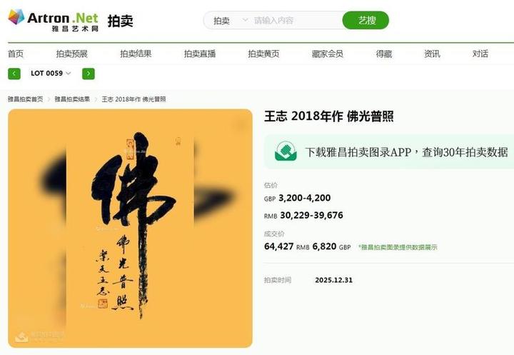 ?書法家王志作品《佛光普照》以6.4萬(wàn)元成交,藝術(shù)價(jià)值再獲市場(chǎng)認(rèn)可