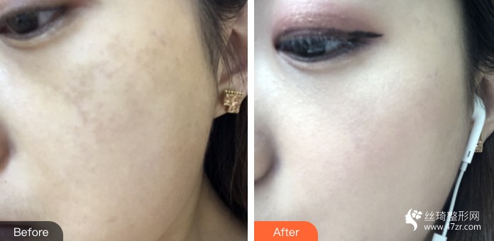 我的斑屬于深層斑,所以我的斑點(diǎn)要多做幾次才能去掉,做調(diào)節(jié)之前護(hù)士小姐姐幫我卸妝清潔,手法專業(yè),很舒服。緊接著用皮膚檢測(cè)儀檢測(cè)皮膚,檢測(cè)完皮膚就開始進(jìn)行重頭戲—超激光美膚操作了。超激光美膚疼痛感要小很多,盡管醫(yī)生是這么跟我說的,當(dāng)我躺在調(diào)節(jié)床上,等待醫(yī)生操作的時(shí)候,內(nèi)心還是緊張的,但當(dāng)光束打下來的時(shí)候,我的心就徹底放松了,因?yàn)檫@個(gè)感受就跟用手指頭彈你的臉一樣,這真不能叫“疼”來形容的。