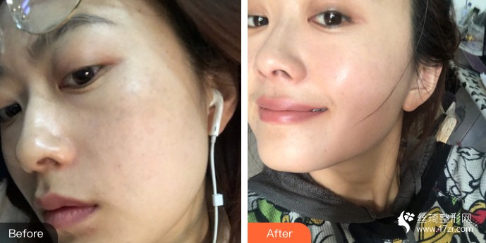 恢復(fù)情況不錯(cuò),六天左右痂已經(jīng)掉得差不多了,現(xiàn)在已經(jīng)做完十多天啦,臉上斑點(diǎn)顏色淡了,相比以前,皮膚變得更透亮細(xì)膩了。這錢(qián)花得值了。