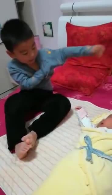 四歲小哥哥唱歌哄滿月小妹妹不哭 太精彩了
