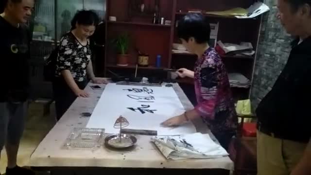 桃花湖美女黃敬芳在桃江縣桃花江文化研究會所的書法現(xiàn)場揮豪潑墨,一靜一動一乾坤。