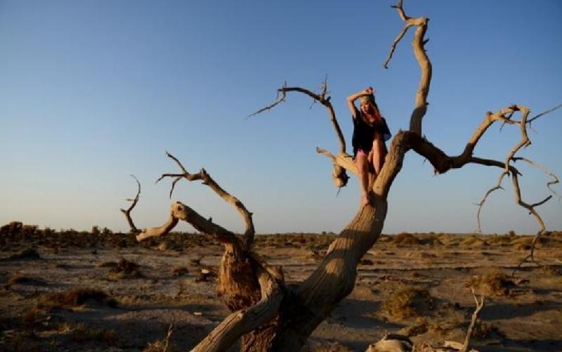 沿著一條久旱的河谷