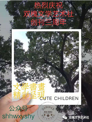 1、【雙槐文學(xué)藝術(shù)社】為文學(xué)和書畫藝術(shù)綜合微刊平臺,歡迎您關(guān)注公眾號shhwxyshy。投稿方式:郵箱投稿564231311@qq.com。為了擴(kuò)大宣傳,凡雙槐文學(xué)藝術(shù)社刊出作品,同步在微博推出。優(yōu)秀作品在城市頭條刊發(fā)。
