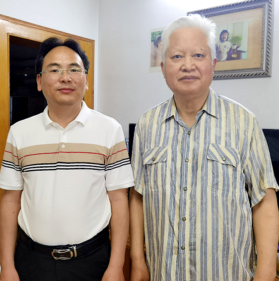 本文作者請(qǐng)教江蘇大學(xué)人文學(xué)院原黨委書(shū)記兼院長(zhǎng)笪遠(yuǎn)毅教授(左)。