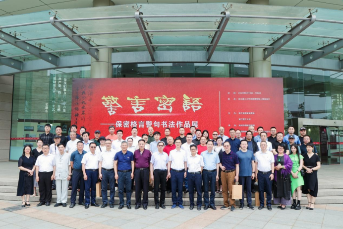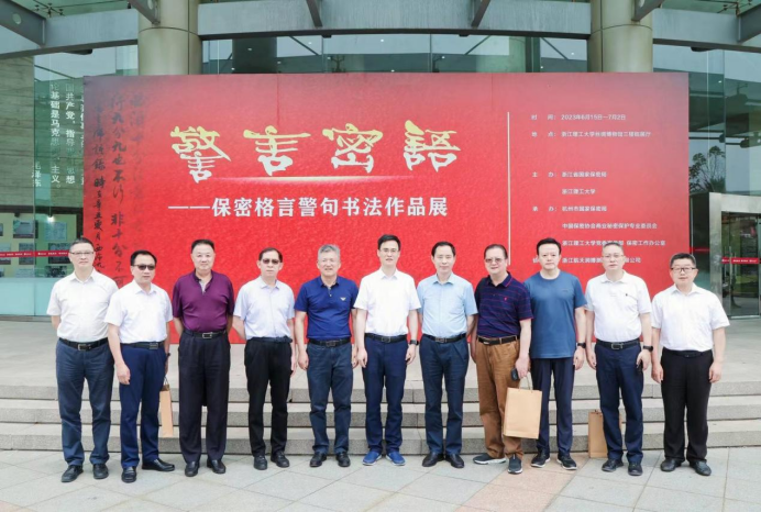 為深入推進(jìn)學(xué)習(xí)貫徹習(xí)近平新時(shí)代中國特色社會主義思想主題教育,提高全員保密責(zé)任意識,加強(qiáng)保密宣傳教育,創(chuàng)新保密宣傳形式,筑牢新時(shí)代維護(hù)黨和國家秘密安全的人民防線,6月15日上午,由浙江省國家保密局、浙江理工大學(xué)主辦,杭州市國家保密局、中國保密協(xié)會商業(yè)秘密保護(hù)專業(yè)委員會、浙江理工大學(xué)黨委宣傳部和保密工作辦公室承辦的警言密語——保密格言警句書法展開幕式在浙江理工大學(xué)絲綢博物館一樓舉行。