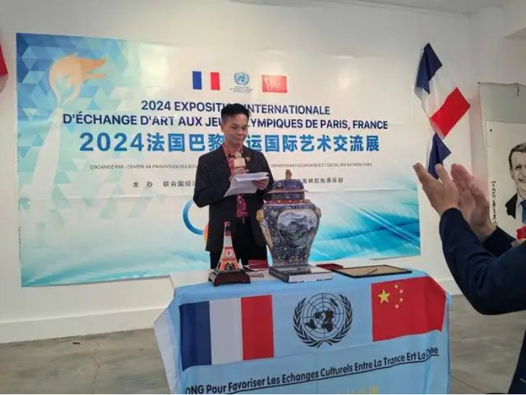 七月巴黎,激情奧運。在巴黎奧運開幕式前一天,當?shù)貢r間7月25日;由聯(lián)合國經(jīng)濟和社會部NGO-法中文化交流促進中心主辦的2024法國巴黎奧運國際藝術(shù)交流展在這個被奧運點燃的巴黎盛事開啟,拉開帷幕。為這個穿越百年的奧運之城帶來一股來自東方的藝術(shù)之風(fēng)。