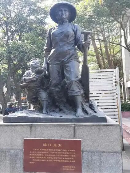 公園分為兩片園區(qū)。南園堆土成丘,北園以填海造地而鋪展,兩片園區(qū)被一座橫跨濱江東路的人行天橋聯(lián)結(jié),仿佛一道飛虹,縫合了城市的喧囂與自然的靜謐。南園堆土成丘形成起伏凹突的地形,園內(nèi)綠草如茵,種植了榕樹、木棉、南洋杉、棕櫚等熱帶喬木,搭配紫荊、杜鵑、三角梅等觀賞花木點(diǎn)綴其間,營(yíng)造出疏朗的南國(guó)風(fēng)光。若逢春日,木棉花開,殷紅的花瓣照耀大地,好看極了。拾級(jí)而上至土丘最高處,“山頂涼亭”將南園全景盡收眼底。公園疏林間有石雕“聽琴”、花架亭廊、假石山等景觀。?園內(nèi)設(shè)有半場(chǎng)籃球場(chǎng),有2張乒乓球臺(tái),吸引了不少年輕人競(jìng)技交流。有的老年人在坡頂涼亭唱歌,有的在開闊區(qū)域練習(xí)養(yǎng)生功,還有統(tǒng)一服裝的舞蹈愛好者,太極拳練習(xí)者,還有四人一組踢毽子的,等等。有人在此陪伴孩子成長(zhǎng),有人選此拍婚紗照見證愛情,有人錄制表演直播視頻,有攝影愛好者捕捉園內(nèi)四季光影。南園左側(cè),一座深褐色的雕塑赫然入目:這便是“濱江兒女”,一件鐫刻著城市記憶的作品。1985年,為紀(jì)念周恩來總理關(guān)懷水上居民上岸定居20周年,雕塑家凌鎮(zhèn)威以珠江漁家姐弟為原型,將水上居民“上岸安居”的歷史定格成永恒。筆者親身查看,“濱江兒女”四字為雕塑家潘鶴題字。四十余載歲月中,這座雕塑成為珠江之畔變化的“歷史證人”。