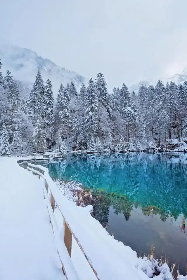 群山環(huán)抱,遠處的雪山耀眼奪目,如果你將視線慢慢收近,雪山——稀疏的蒼老杉樹林——逐漸濃密的喬木林——千枝百態(tài)并且都戴上了小白?的灌木叢,其間是從上到下的一盤盤清泉、冰雪混合冷飲、有的干脆就是冰塊純飲料!