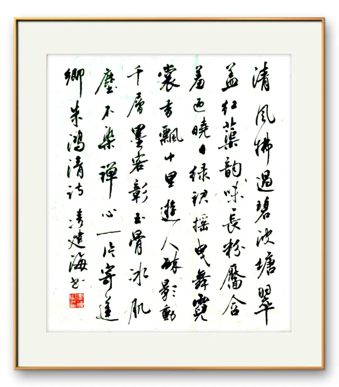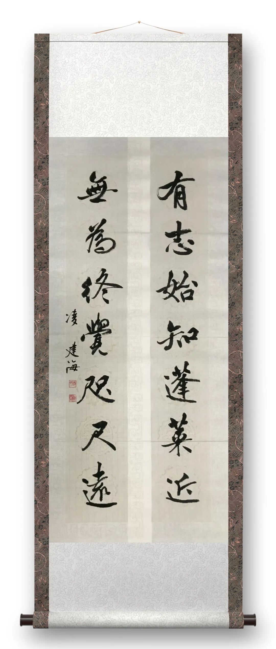 凌建海,1959年2月生。八十年代初入上海青年宮書(shū)法進(jìn)修班學(xué)習(xí)書(shū)法,拜瞿心安、陳炳昶、張靜芳等老師為師,遍臨唐六家、宋四家碑帖,涉篆隸及魏碑,以基本功為宗,追晉人書(shū)風(fēng),尋宋人意趣,以期字里行間透露的高古。
