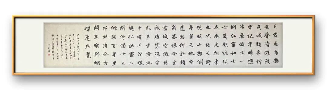 凌君工于楷而草行兼顧,字體殊而各盡其妙。誠(chéng)以為楷書(shū)上通篆隸,下接行草,從而專(zhuān)注臨摹唐楷提按之法,省悟顏筋柳骨之筆意,沉浸于蘇黃米蔡下筆之道。其楷書(shū)也,莫不規(guī)矩整齊。結(jié)構(gòu)嚴(yán)謹(jǐn),字體平穩(wěn)如山,間距無(wú)一參差。筆畫(huà)清晰,起收干凈利落,相顧無(wú)一粘連。依字取勢(shì),因字立形,同字異寫(xiě),落墨求變。點(diǎn)慎輕重,橫或粗細(xì),豎含直弧,勾如飛檐,看似逾度而實(shí)則合規(guī),形態(tài)豐富而百看不厭,典雅高貴之氣,令人嘆為觀止!觀其草書(shū),則縱橫奔逸,赴速急就。一筆而成,上下?tīng)窟B。奇形離合,數(shù)意兼包。字常因不滿(mǎn)而生白,紙緣之無(wú)墨而勝有墨,如弦之無(wú)聲勝有聲也。觀其行書(shū),既得楷書(shū)的規(guī)整,又具草書(shū)的流暢。脫楷之拘,收草之放,圓潤(rùn)而妍美,飄逸而靈動(dòng)。嗚呼!一畫(huà)之間,變起伏于峰杪;一點(diǎn)之內(nèi),殊衄(衄nǜ )挫于豪芒,積墨成字,殊非易也!