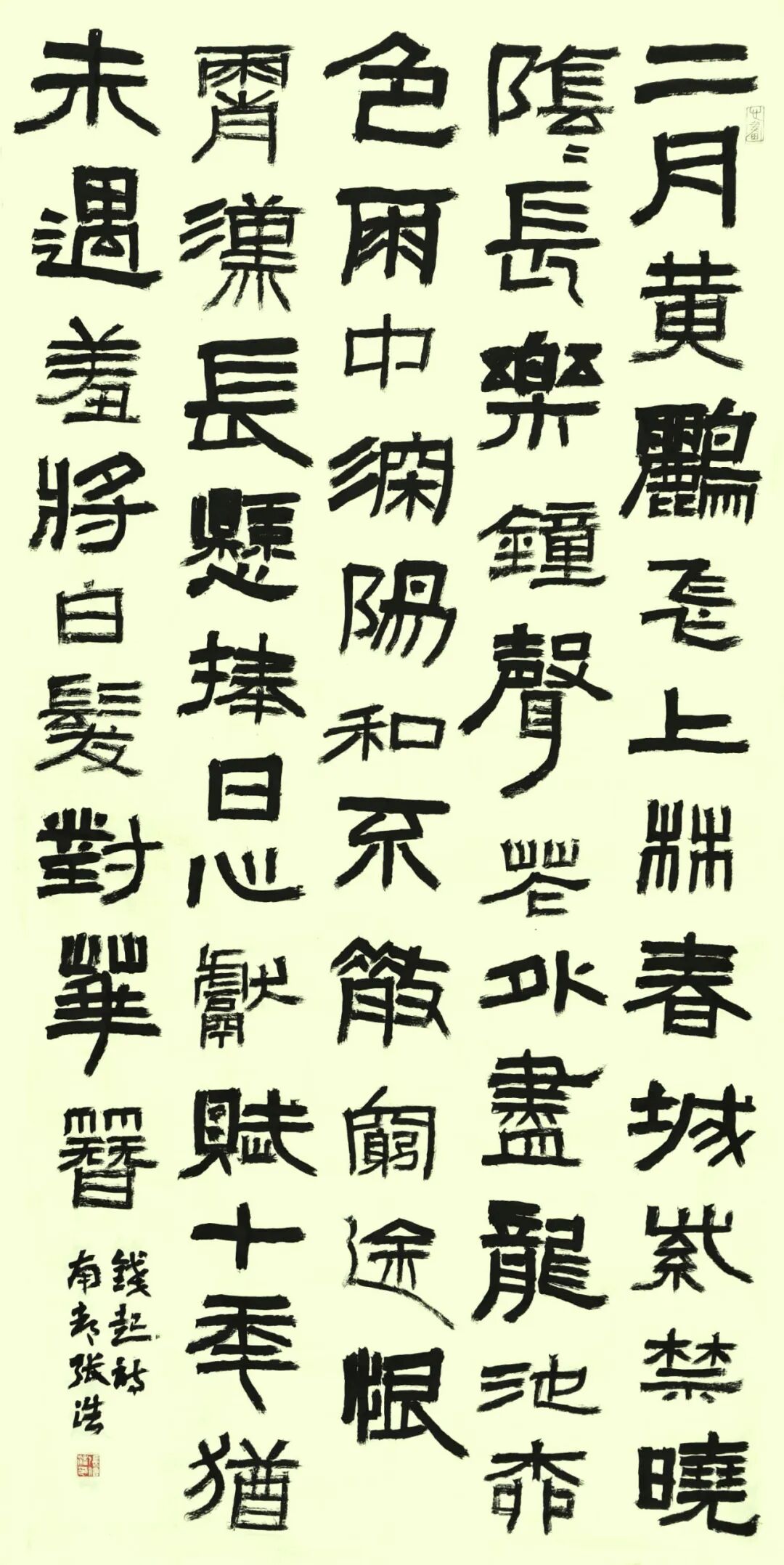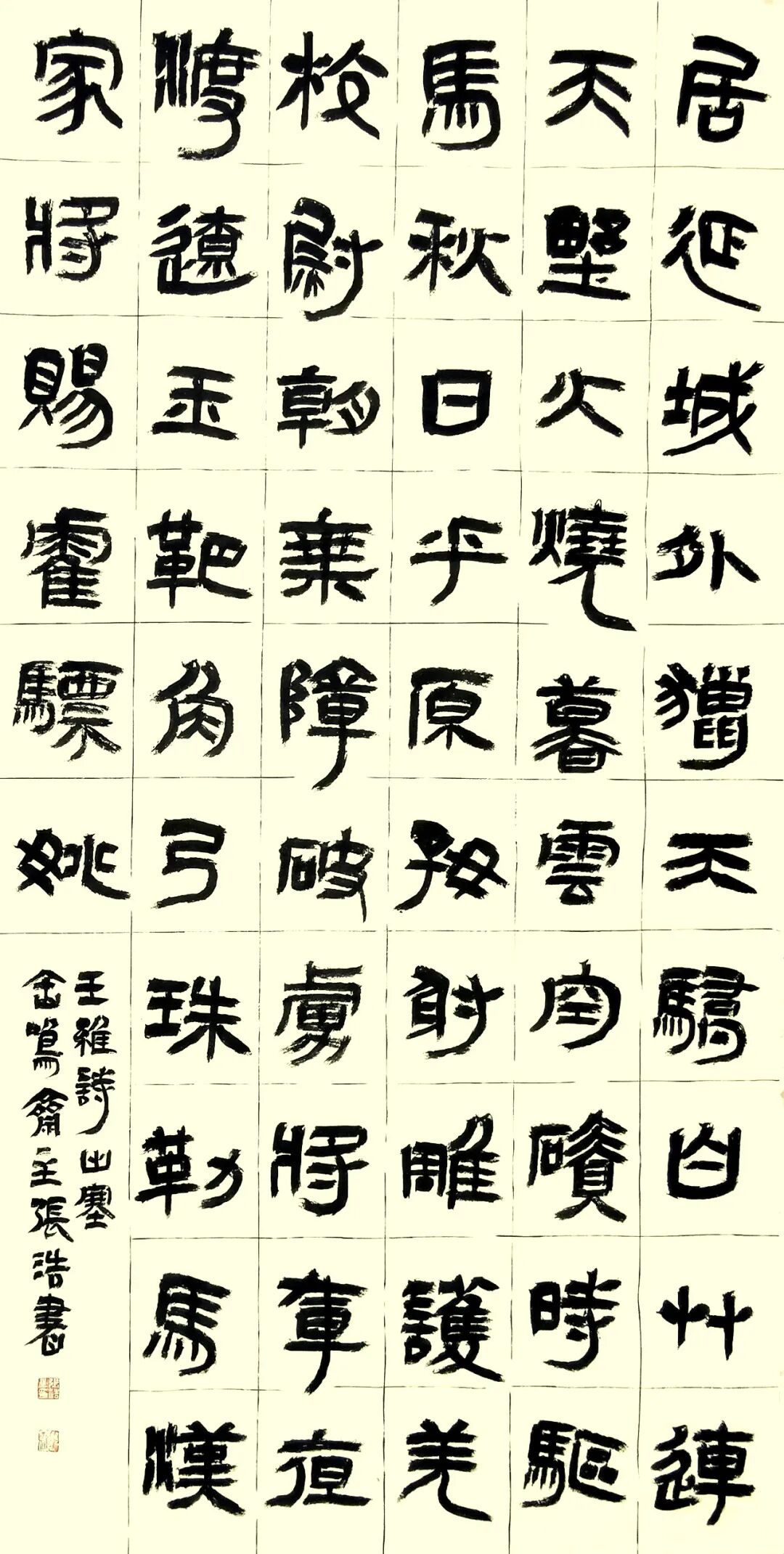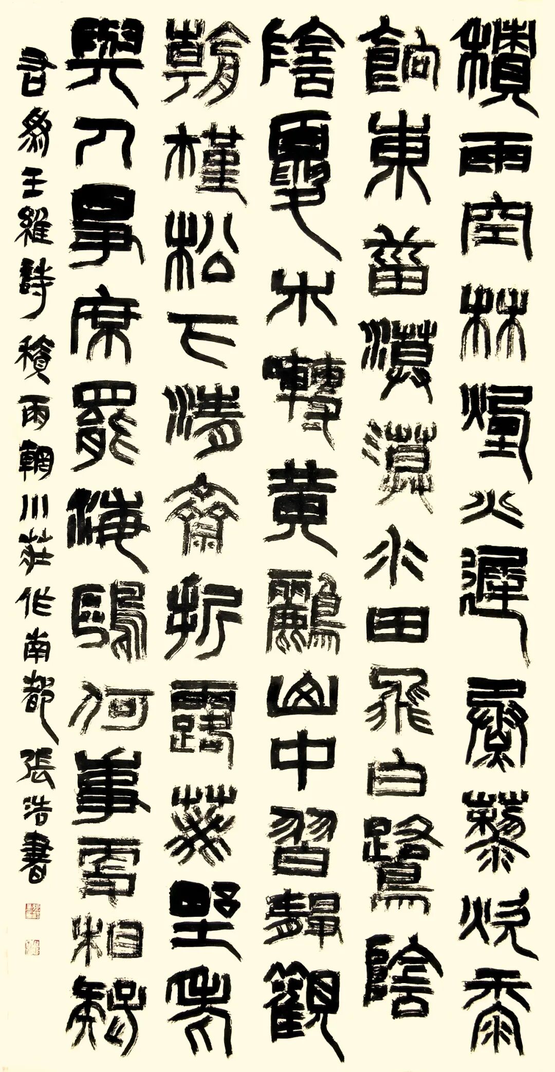 張浩先生的書法彌漫著秦漢人的氣息,高古、博大,樸茂、雅致……,不跟風(fēng)隨流,無靈巧油滑和嫵媚多姿之態(tài),有謙謙君子之風(fēng)和榮容華貴、超然脫俗的正大氣象。黃山谷云:“書字百病可醫(yī),唯俗不可醫(yī)也”。格調(diào)和氣息決定了書法的品味,格調(diào)和氣息低下的,再好的技法也只是“匠人”而已。