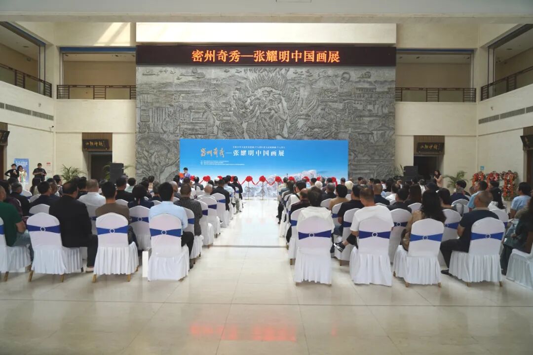 9月29日上午,由濰坊市美術(shù)家協(xié)會,政協(xié)諸城市委員會,中共諸城市委宣傳部主辦,諸城市文學(xué)藝術(shù)界聯(lián)合會,諸城市文化和旅游局承辦,諸城市政協(xié)書畫院,諸城市博物館,諸城市美術(shù)家協(xié)會,諸城市書法美術(shù)協(xié)會,諸城市老年書畫研究院協(xié)辦的慶祝中華人民共和國暨人民政協(xié)成立76周年,密州奇秀—張耀明中國畫展在諸城博物館開幕。展覽分“密州四曲”“盧山五詠”“密州八景”“山水情懷”四個主題,共收集了張耀明近十年來創(chuàng)作的中國畫130幅。同時《密州奇秀—張耀明作品集》由天津人民美術(shù)出版社出版發(fā)行。開幕式上向諸城市檔案館,諸城市圖書館,諸城新華書店贈送了作品集。出席開幕式的有中國國家畫院研究員、山東美術(shù)家協(xié)會原副主席、山東美術(shù)家協(xié)會人物畫藝委會主任、山東藝術(shù)學(xué)院碩士生導(dǎo)師梁文博,中國美術(shù)家協(xié)會會員、山東美術(shù)家協(xié)會花鳥畫藝委會副主任、山東工藝美術(shù)學(xué)院造型藝術(shù)學(xué)院院長雷家民,山東藝術(shù)學(xué)院教授、山東美術(shù)家協(xié)會油畫藝委會副主任宋齊鳴,濰坊市政協(xié)原常委、原濰坊市文化局局長王振民,山東美術(shù)家協(xié)會原副主席,濰坊市美術(shù)家協(xié)會主席王居明,中國博物館協(xié)會理事,濰坊市博物館原館長吉樹春,濰坊市原文物局書記丁德元,山東美術(shù)家協(xié)會山水畫藝委會副主任、濰坊美術(shù)家協(xié)會名譽主席時振華,濰坊學(xué)院美術(shù)學(xué)院原院長、濰坊油畫學(xué)會主席周赤舟,藝術(shù)評論家、山東省美術(shù)家協(xié)會理論委員會副主任沈鳳國,青島瀾灣美術(shù)館館長徐懷敏,五蓮縣文聯(lián)創(chuàng)作室美術(shù)師李宜蘭。出席開幕式的還有政協(xié)諸城市委員會主席王愛民,濰坊市技師學(xué)院副院長、濰坊市工程技師學(xué)院院長許傳平,諸城市政府二級調(diào)研員李傳崗,諸城市人大原副主任、中國書法家協(xié)會會員楊中波,諸城市政協(xié)原副主席王金堂,諸城市政協(xié)黨組成員管常青,中共諸城市委宣傳部副部長楊菲菲,諸城市文化和旅游局局長李曉慧,諸城市文學(xué)藝術(shù)界聯(lián)合會副主席趙瑋,諸城百盛商場股份有限公司黨委書記董事長丁洪亮,中國大運河文化澳門促進(jìn)會會長李政國。來自全市各界社會名流、書畫藝術(shù)家和美術(shù)愛好者300余人同時出席了開幕式活動。政協(xié)諸城市委員會主席王愛民致辭并宣布畫展開幕。畫家張耀明介紹了本次畫展的策劃構(gòu)思和創(chuàng)作思想。山東省美術(shù)家協(xié)會副主席梁文博、濰坊市美術(shù)家協(xié)會主席王居明分別代表山東美術(shù)家協(xié)會和濰坊市美術(shù)家協(xié)會對畫展的成功舉辦表示祝賀。張耀明是一位學(xué)者型藝術(shù)家,諸城博物館原副館長、副研究館員。目前擔(dān)任我市政協(xié)書畫院副院長、文史顧問。多年來扎根齊魯文化沃土,堅守藝術(shù)理想,潛心研究蘇軾文化與密州人文歷史,以畫筆為媒,將傳統(tǒng)中國畫技法與家鄉(xiāng)山水相融合,創(chuàng)作出一批既有傳統(tǒng)筆墨韻味,又充滿時代氣息的精品佳作。作品展現(xiàn)了對超然意境的追求和對家鄉(xiāng)山水的深厚情感與文化自信。本次畫展是張耀明藝術(shù)成果的集中展示和密州文化在當(dāng)代續(xù)寫新篇的生動體現(xiàn),大力提升了城市文化軟實力,呈現(xiàn)了一場視覺與心靈的雙重盛宴。此次活動作為2025濰坊諸城東坡文化系列活動之一,將帶動更多本土藝術(shù)家扎根龍城、深耕文脈,吸引更多外界目光聚焦諸城、讀懂諸城,讓千年文脈在新時代綻放更絢麗的光彩,為我市經(jīng)濟(jì)社會高質(zhì)量發(fā)展注入更深厚的文化動力。古之密州,得名密水。北襟丘陵聚村落,南領(lǐng)峰巒齊拱揖。濰水穿流,滋潤萬壑滄田。誠如是,南山有佳色。奇秀不減雁蕩。風(fēng)流蘇學(xué)士,想象有遺芳。蘇軾為政,體恤民情,遍覽密州人文山水。修葺北臺,燕處超然。登高望遠(yuǎn),吟賦抒懷,留下千古名篇曲。密州奇秀,非惟自然之神奇秀美而感,更因其千年人文遺風(fēng)所顯。孝感動天,遂以天下禪讓??w紲非罪,子以女兒妻之。無為而治,成以蕭規(guī)曹隨。梁易伏經(jīng),授以帝王治道。諸葛智族,握以三國命運。啟密州古老文明之脈,傳東魯明經(jīng)格物之風(fēng)。風(fēng)光形勝,物華天寶,龍光射牛斗之墟;人杰地靈,英才輩出,徐孺下陳蕃之榻。山不在高,水不在深,在乎超然物外。山川不以人遇不遇而興云雨,君子不以人知不知而敦道德。清澈雩泉,冬夏若一,汪洋折旋如車輪。再而禱焉,皆應(yīng)如響,軾以吏不聞應(yīng)而愧于神。古往今來,其爍永恒。密州奇秀,奇之馬耳雙峰立濰河水蜿蜒。奇之常山雩泉潤障日峨眉小。秀于盧山盧敖洞韓王壩月冷。秀于黃老蓋公堂超然中秋月。輕煙點點。城上高臺,使君歌笑。片片矮槐,株株垂柳。碧連天,晚云間,半壕春水一城花,真?zhèn)€是超然。蘇軾予密州以安寧祥瑞,密州賦蘇軾于豪放曠達(dá)。物換星移幾度秋,閑云潭影舞蹁躚。千年東武今何在?濰水泱泱盡安瀾。捧袂古今,蘇軾難逢,撫五弦而共歡。鐘期既遇,奏流水以歌之。而籠山川于形內(nèi),挫萬物于筆端。觀古