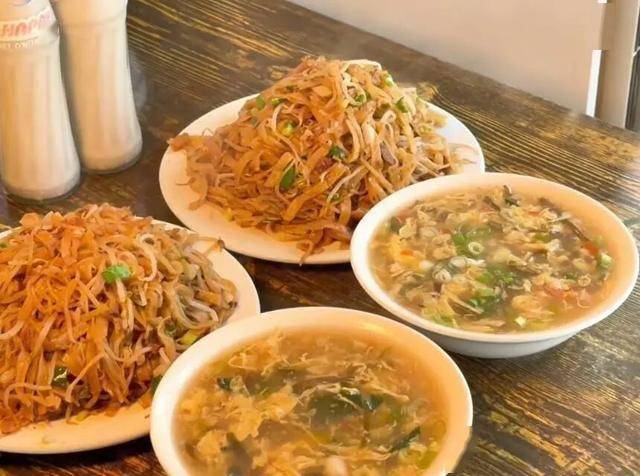 若說(shuō)炒餅是這場(chǎng)味覺(jué)盛宴的主角,那么酸辣雞蛋湯便是最完美的搭檔。金黃蛋花在琥珀色的湯汁中綻放,黑醋的醇酸與胡椒的辛香在舌尖交織,一碗下肚,從胃里暖到心里。這碗湯的妙處,在于酸與辣的恰到好處——酸得開(kāi)胃,辣得暖心,既解了炒餅的油膩,又增添了新的風(fēng)味層次。
