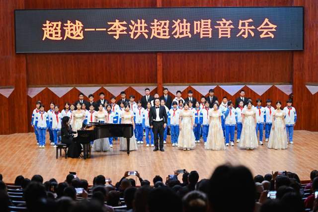 低男中音李洪超以精湛的美聲演唱技巧、飽滿的情感表達(dá),賦予每首作品全新的生命力。臺下觀眾沉浸其中,時而靜心聆聽,時而掌聲雷動,時而隨旋律輕輕哼唱,現(xiàn)場氛圍熱烈而溫馨。中國著名男高音歌唱家、聲樂教育家馬偉營點(diǎn)評說,李洪超的演唱音色醇厚飽滿,情感真摯深沉,演唱技巧嫻熟精湛,極具藝術(shù)感染力。本場音樂會由貴州省著名主持人景偉健主持,貴州大學(xué)音樂學(xué)院外聘鋼琴伴奏教師周凡琪、貴州李斯特鋼琴學(xué)校創(chuàng)始人尹攀麗擔(dān)任鋼琴伴奏,特邀抒情女高音蔡麗娟以及李駿垚、周士霽、貴陽市烏當(dāng)中學(xué)雛燕合唱團(tuán)助演。