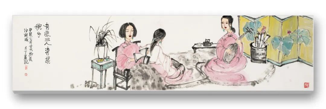 月下畫畫似乎跟女權與女性主義沒關系,她尊重來自內心的覺悟,以及女性生活視覺的閱歷。她極度自我、自信,又能天衣無縫地讓二者雜糅在一起,這自信、自我是構成月下筆墨語言底氣所在,在她的畫中你絕對找不到“柳葉描”,“釘頭鼠尾描”之類,合乎畫法的畫法存在。她的畫幅都不大,看著這些畫作你很難想象,那些線條是由一個女子握著如椽大筆,自心底,一筆一劃如空中蕩漾般,自自然然流淌而出。