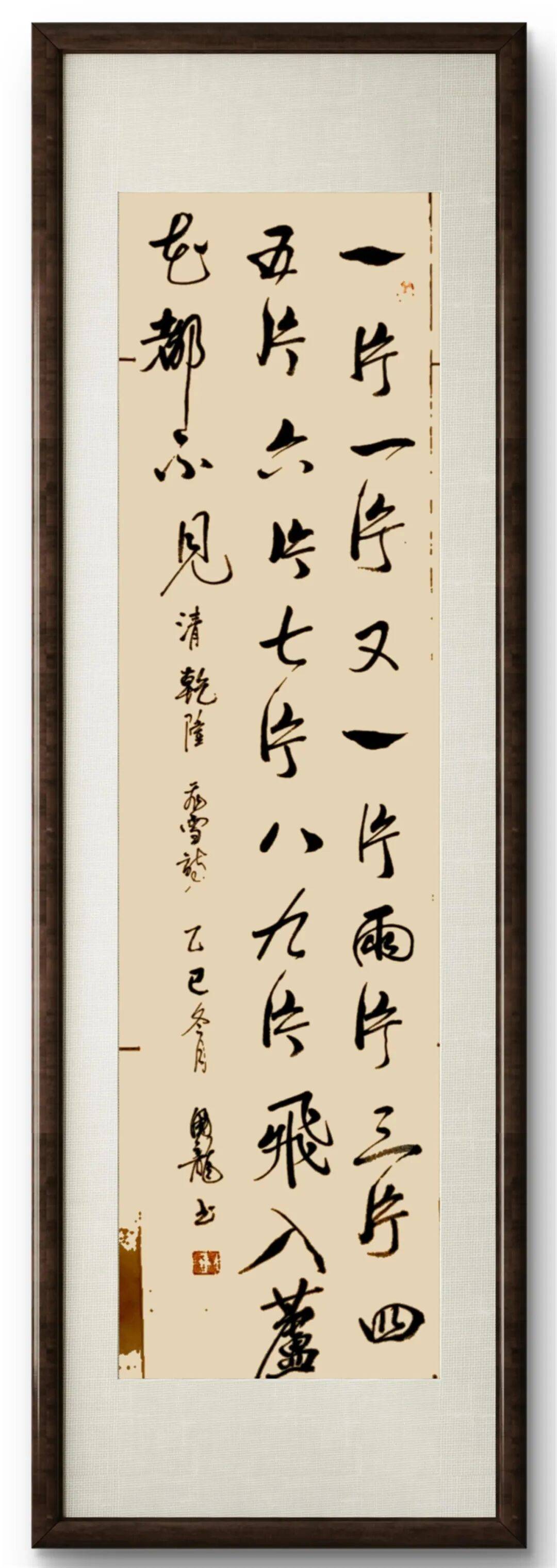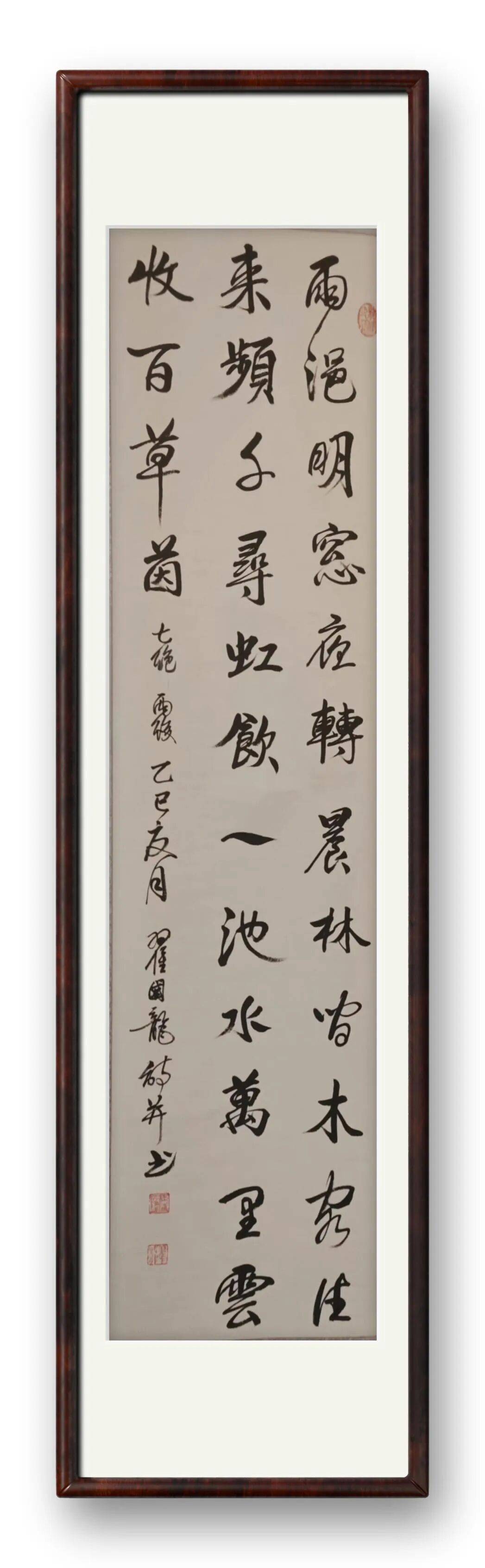 書(shū)法作品是翟國(guó)龍書(shū)畫(huà)藝術(shù)的另一重要維度,其書(shū)法兼收諸家之長(zhǎng),楷書(shū)端莊規(guī)整,行書(shū)流暢灑脫,草書(shū)奔放不羈。他深諳“書(shū)為心畫(huà)”之道,筆墨間既有碑帖的沉厚古樸,又有個(gè)人的性情流露,筆力遒勁處如千鈞墜石,線(xiàn)條婉轉(zhuǎn)時(shí)如流水行云,章法布局疏密有致,氣韻生動(dòng)。更妙的是,他常以詩(shī)配畫(huà)、以書(shū)題跋,使詩(shī)、書(shū)、畫(huà)三者渾然一體,互為增色,彰顯了傳統(tǒng)文人書(shū)畫(huà)“詩(shī)書(shū)畫(huà)印”的綜合素養(yǎng),也讓作品的文化底蘊(yùn)更加深厚。