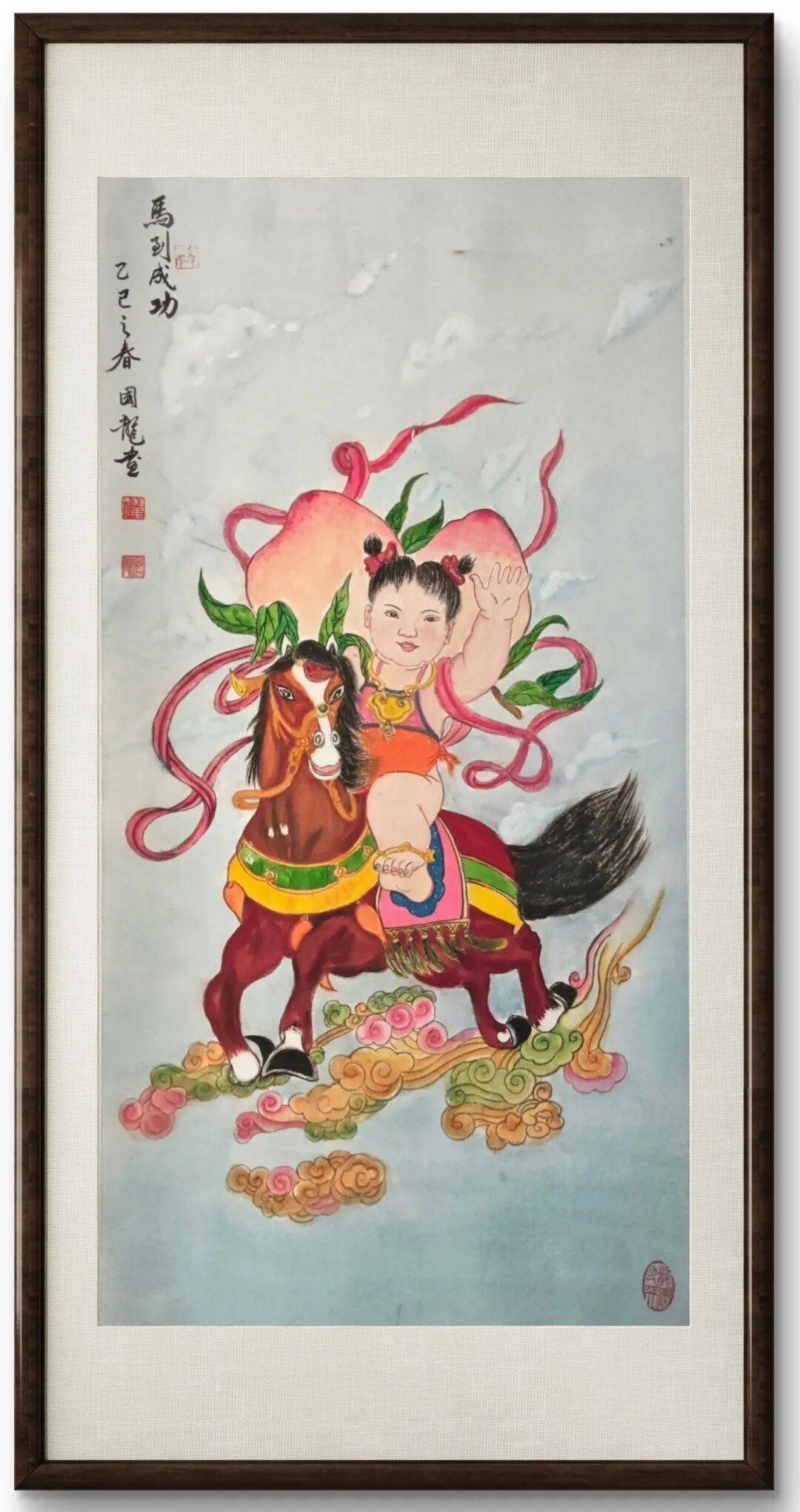 翟國(guó)龍的生肖工筆畫(huà),最見(jiàn)其細(xì)膩傳神的筆墨功力。工筆之妙,在于“精于形似,妙于神聚”,他筆下的生肖,或憨態(tài)可掬的靈鼠,或奔騰昂揚(yáng)的駿馬,線(xiàn)條勻凈流暢如春蠶吐絲,設(shè)色清麗雅致不尚濃艷。尤為難得的是,他不滿(mǎn)足于對(duì)物象的簡(jiǎn)單復(fù)刻,而是將生肖的靈性與人文意趣相融,寥寥幾筆勾勒的眼神,便讓筆下生靈躍然紙上,既有傳統(tǒng)工筆的嚴(yán)謹(jǐn)法度,又有現(xiàn)代審美中的生動(dòng)鮮活,盡顯“以形寫(xiě)神”的藝術(shù)真諦。