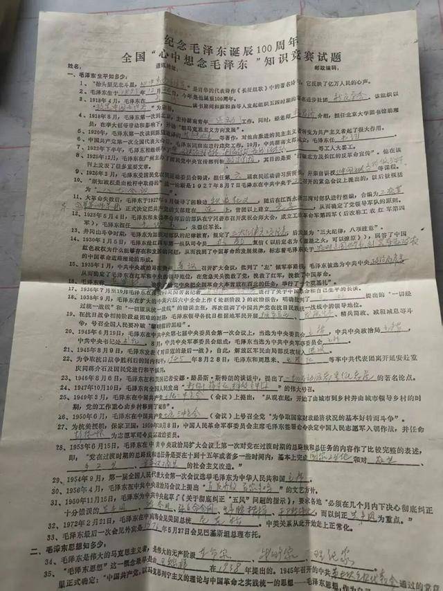 我仔細(xì)研讀試題,認(rèn)真查閱資料并完成作答。隨后,我撰寫了題為《我的答卷——心中想念毛澤東》的文章,并寄送給了組委會(huì)。以下是文章內(nèi)容: 癸酉年(1993年)是改革開放浪潮涌動(dòng)的火紅年代,而在這一年的歲尾——12月26日,正是我們心中永遠(yuǎn)銘記的毛澤東主席誕辰100周年紀(jì)念日。在這個(gè)具有特殊意義的日子里,我懷著對毛主席的深切思念,參加了以“心中想念毛澤東”為主題的知識競賽活動(dòng)。