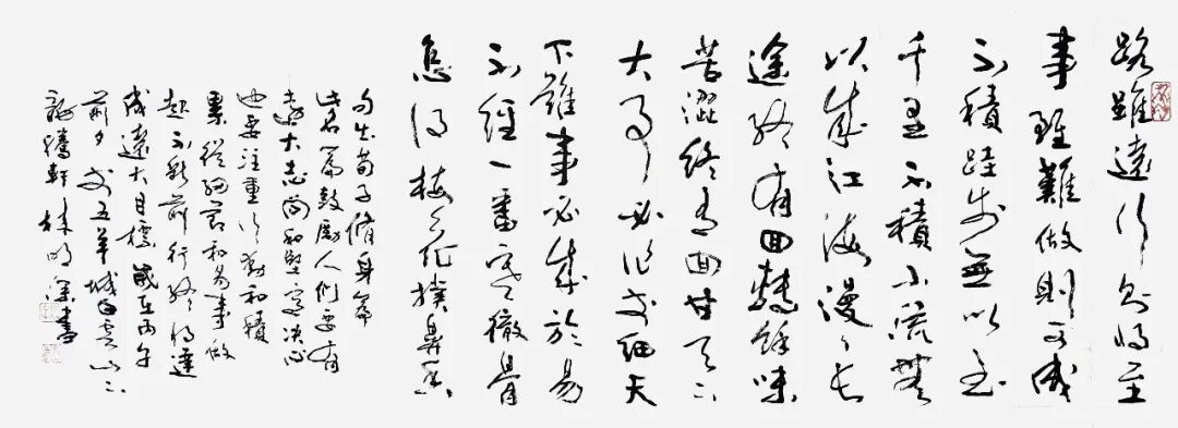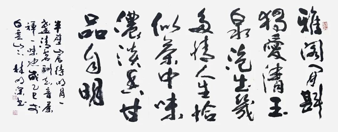 作為廣州羊城書法研究會(huì)顧問(wèn)、香雪書畫會(huì)副會(huì)長(zhǎng),林明深始終秉持文化傳承的使命擔(dān)當(dāng)。他不僅在藝術(shù)創(chuàng)作上精益求精,更在藝術(shù)教育、文化交流等領(lǐng)域不遺余力。從指導(dǎo)后學(xué)到參與國(guó)際藝術(shù)對(duì)話,他以實(shí)際行動(dòng)推動(dòng)著書法藝術(shù)的當(dāng)代發(fā)展。其十二米長(zhǎng)卷《廣州賦》,融鐘鼎文之古拙與狂草之奔放,正是嶺南書風(fēng)向當(dāng)代轉(zhuǎn)化的生動(dòng)見證。