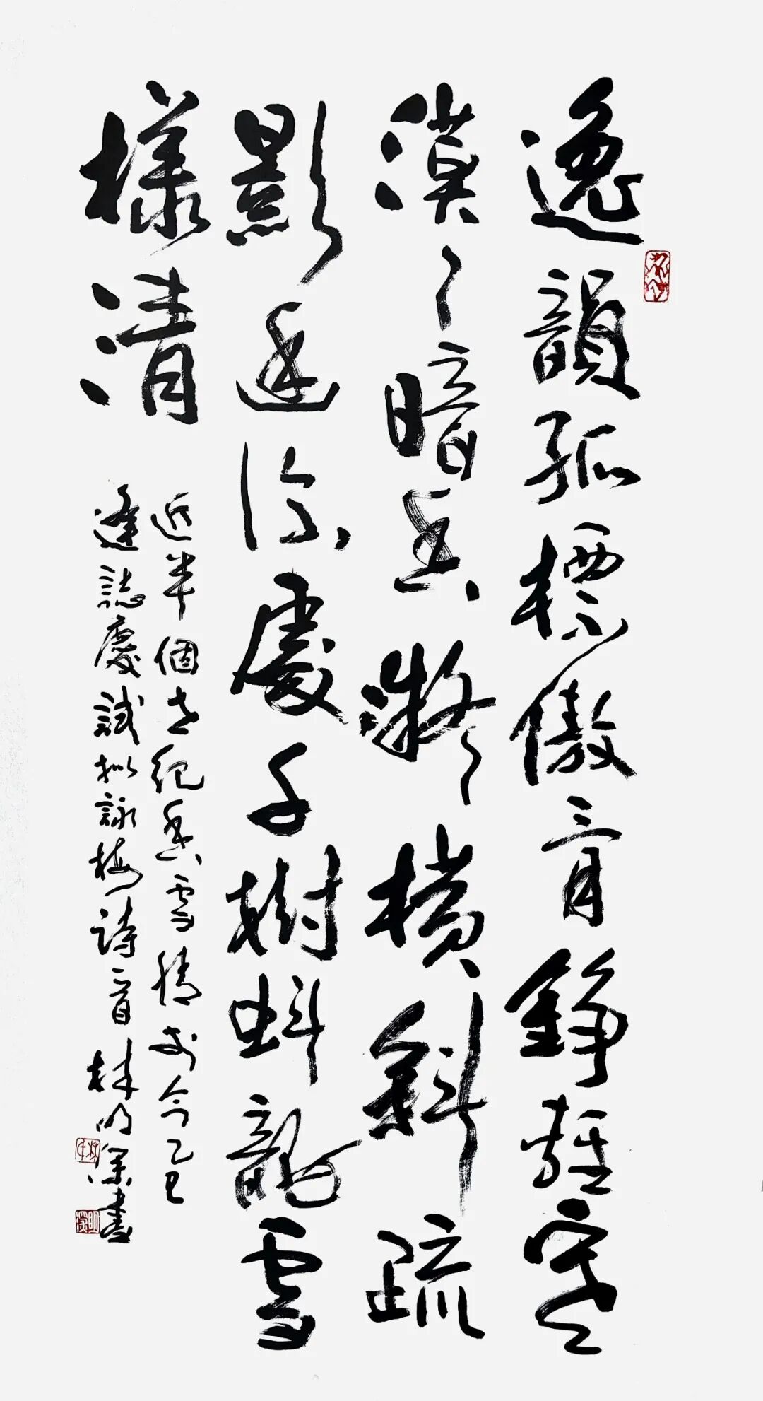 在嶺南文化的沃土上,林明深先生以筆墨為舟,以心靈為楫,在書法藝術(shù)的浩瀚海洋中航行數(shù)十載,成就了一番融古鑄今的藝術(shù)氣象。這位深植于嶺南文脈的書法家,以其獨(dú)特的藝術(shù)語(yǔ)言和深厚的文化底蘊(yùn),在傳統(tǒng)與現(xiàn)代的交匯處,開辟出一片獨(dú)具魅力的書法天地。