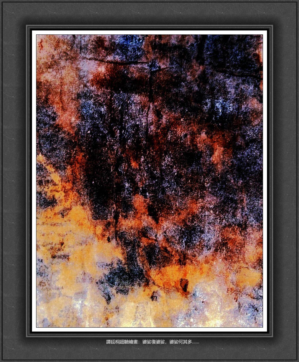 譚延桐的創(chuàng)作帶著“香港文化”的印記。香港是“東西方文化交匯點(diǎn)”,既有中國(guó)傳統(tǒng)文化的底蘊(yùn)(佛教、莊子思想),又有西方現(xiàn)代文化的影響(超驗(yàn)主義、抽象表現(xiàn)主義)。這幅《婆娑復(fù)婆娑,婆娑何其多……》正是“東西方文化融合”的典范:它用西方抽象表現(xiàn)主義的“色”與“質(zhì)”的語(yǔ)言,表達(dá)東方哲學(xué)的“婆娑”“空性”“道”的思想;用中國(guó)古典文學(xué)的“意象”“哲思”,詮釋西方超驗(yàn)主義的“精神”“真理”“永恒”的理念。讓東方哲學(xué)的“深邃”與西方現(xiàn)代藝術(shù)的“張力”相互碰撞,產(chǎn)生了“新的美學(xué)形態(tài)”。