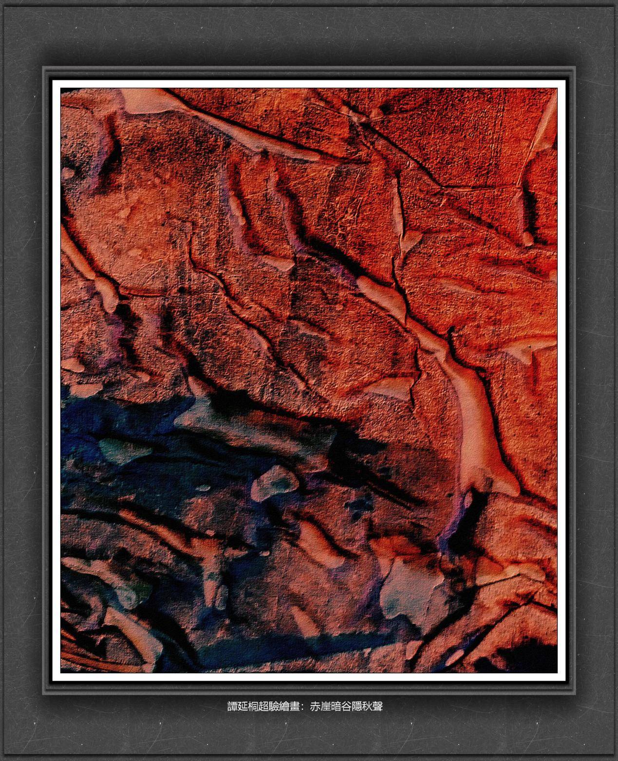 《赤崖暗谷隱秋聲》以其強(qiáng)烈的視覺(jué)沖擊力與深邃的精神隱喻,構(gòu)建了一個(gè)充滿張力的超驗(yàn)空間。這幅作品是藝術(shù)家對(duì)自然景觀的詩(shī)意轉(zhuǎn)譯,是其藝術(shù)哲學(xué)與美學(xué)理念的集中呈現(xiàn)。譚延桐以跨學(xué)科的學(xué)術(shù)視野與創(chuàng)作實(shí)踐,將東方哲思與西方抽象表現(xiàn)主義熔鑄為獨(dú)特的藝術(shù)語(yǔ)言,在《赤崖暗谷隱秋聲》中完成了對(duì)自然、時(shí)間與存在的終極叩問(wèn)。