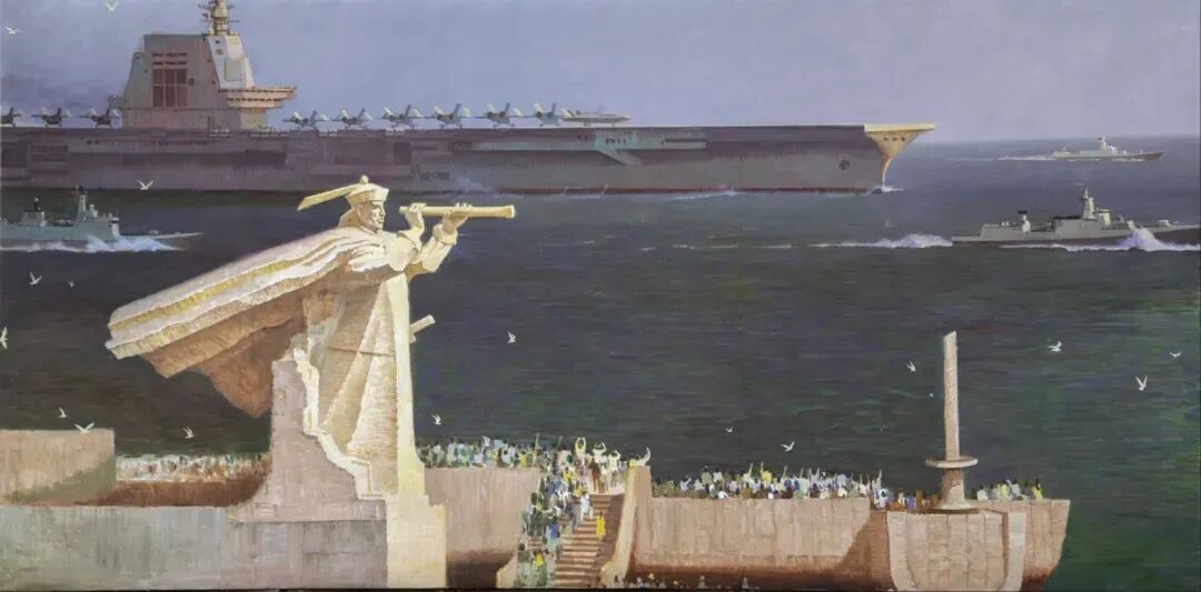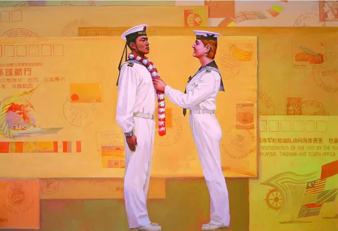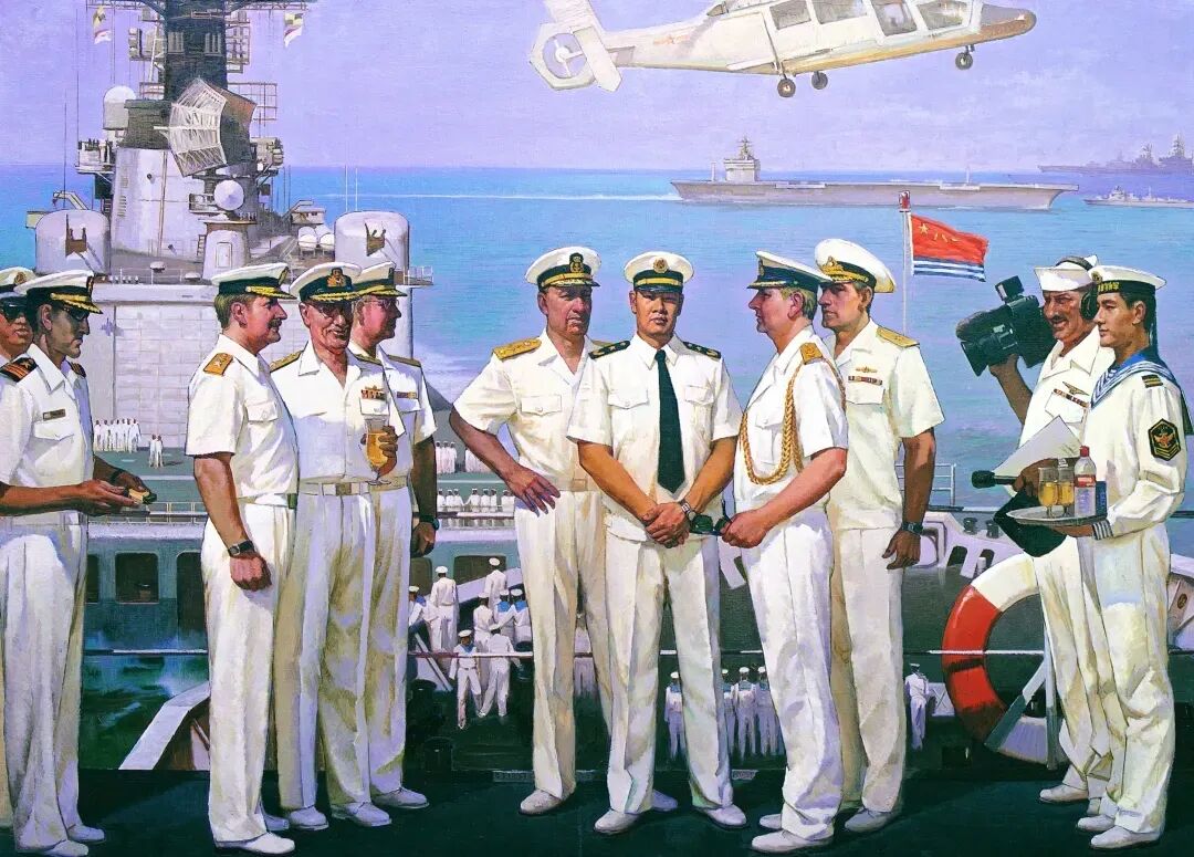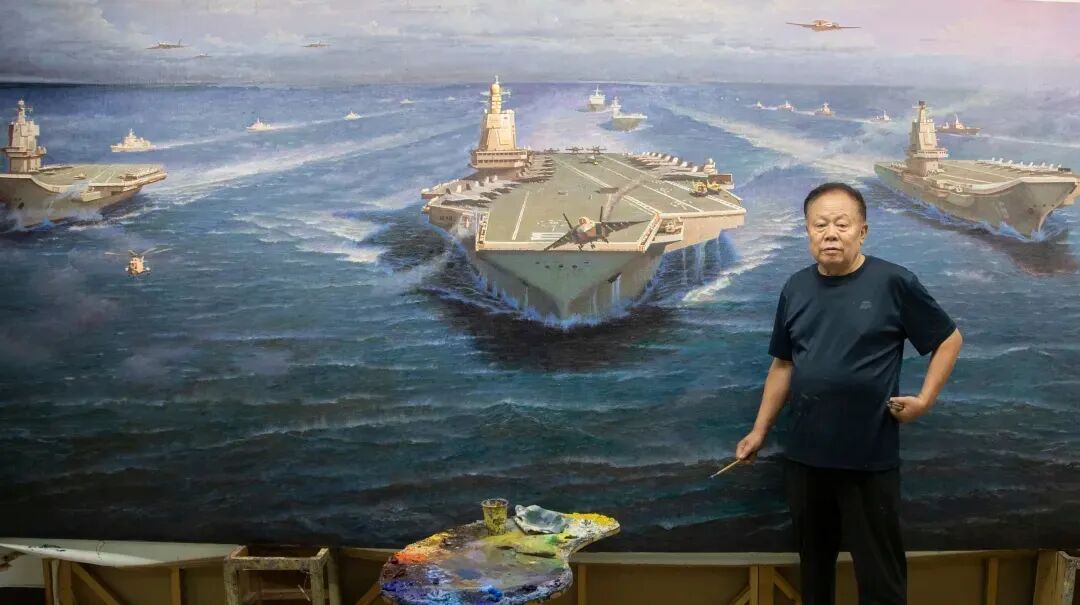 他巧妙借鑒電影蒙太奇手法,以戲劇性的表現(xiàn)方式,將海軍的大氣張揚(yáng)刻畫得栩栩如生。其作品不僅達(dá)到前所未有的藝術(shù)高度,更在思想內(nèi)涵與價值引領(lǐng)上獨(dú)具突破。為人醇厚真誠的他,以畫筆為犁,在藝術(shù)的土壤里辛勤耕耘,結(jié)出了兼具思想性與藝術(shù)性的豐碩果實。