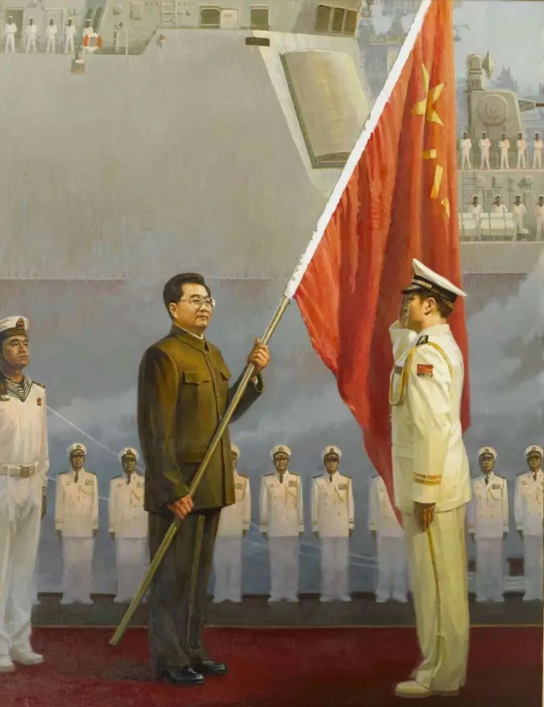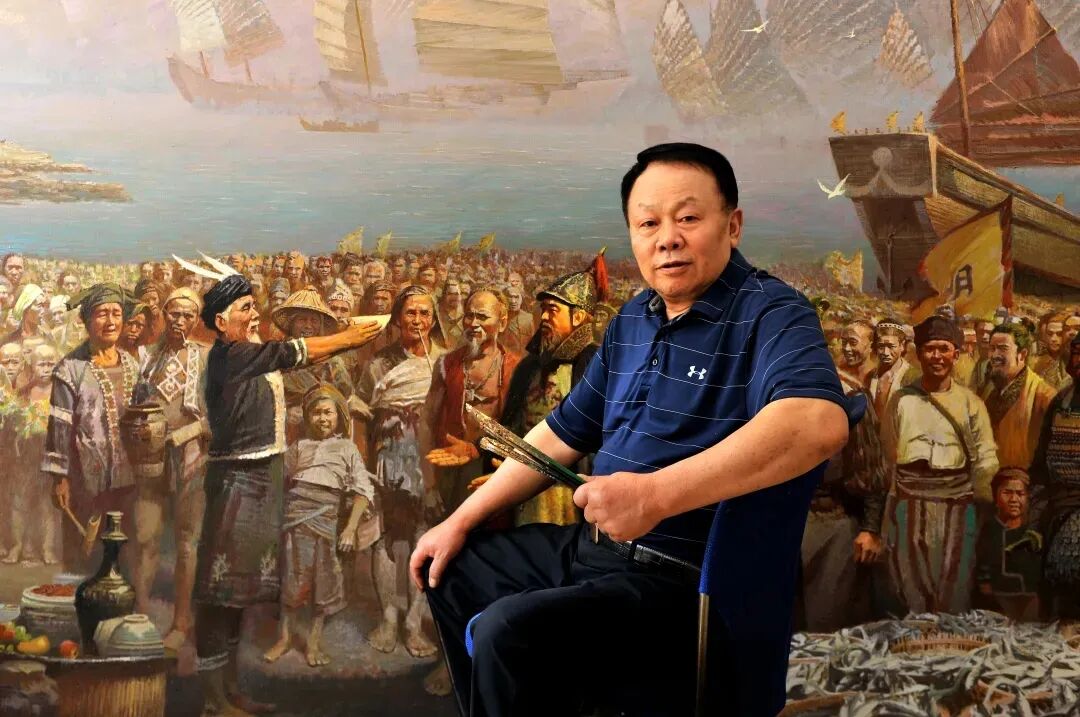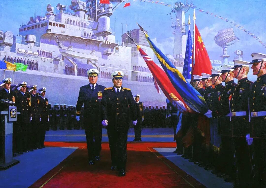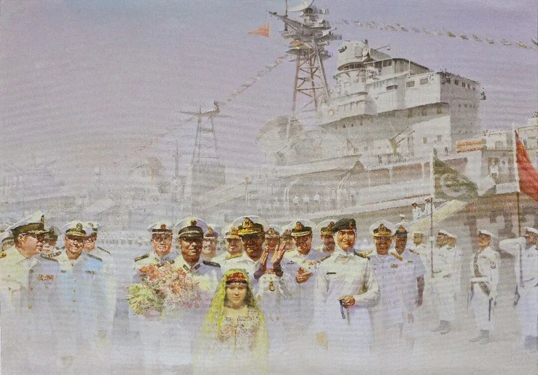 他巧妙借鑒電影蒙太奇手法,以戲劇性的表現(xiàn)方式,將海軍的大氣張揚(yáng)刻畫得栩栩如生。其作品不僅達(dá)到前所未有的藝術(shù)高度,更在思想內(nèi)涵與價值引領(lǐng)上獨(dú)具突破。為人醇厚真誠的他,以畫筆為犁,在藝術(shù)的土壤里辛勤耕耘,結(jié)出了兼具思想性與藝術(shù)性的豐碩果實。