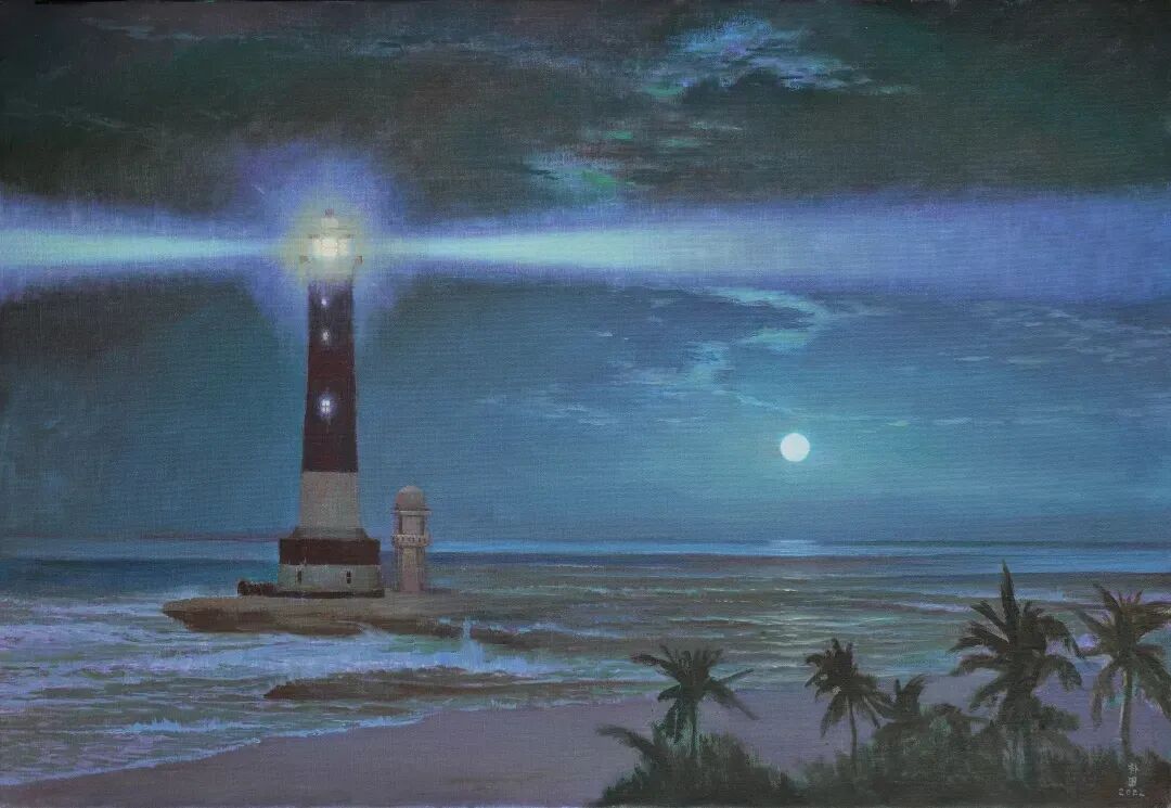 在南海邊疆的海岸線上,長途跋涉的疲憊與對家國安寧的向往交織。當(dāng)朝陽從海平面緩緩升起,朦朧金光灑滿海面,身著白衣的水兵們宛如初升朝陽,灑脫俊朗。第一次凝望周補(bǔ)田的海洋主題油畫,《軍港之夜》的意境便瞬間與畫布相融——他的筆觸里,藏著水兵的疲憊與安恬,透著青春的灑脫與剛毅,更將南海的壯闊氣象、衛(wèi)士的英勇事跡,盡數(shù)濃縮于油彩之間。正是這些可愛的水兵,用熱血與堅守,筑牢了祖國海洋的安寧防線。