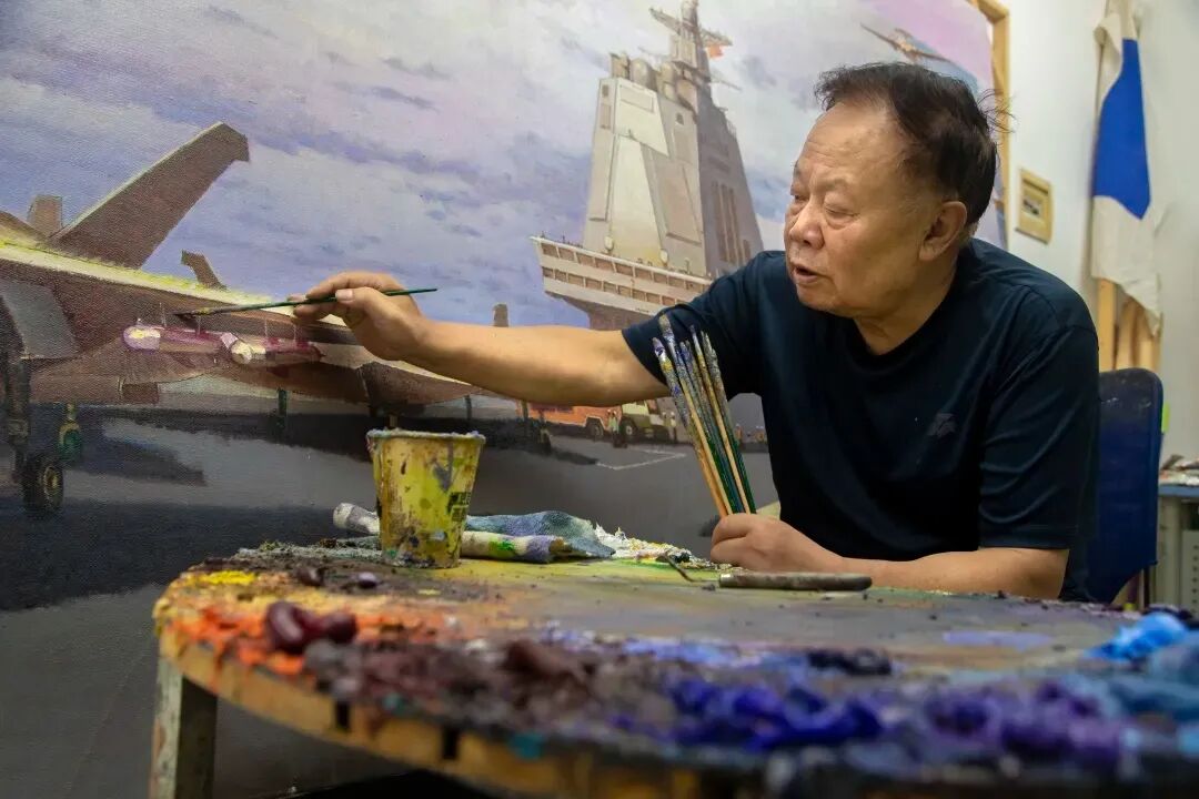 周補(bǔ)田在工作室創(chuàng)作《巡海》