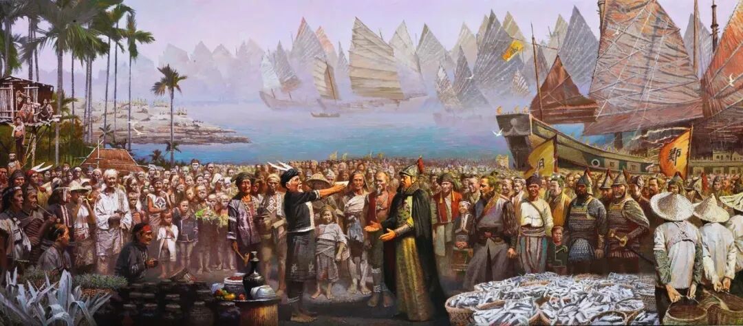 周補(bǔ)田《團(tuán)聚一一鄭成功收復(fù)臺灣》230ⅹ450cm2022年