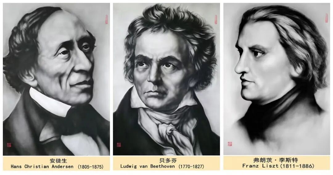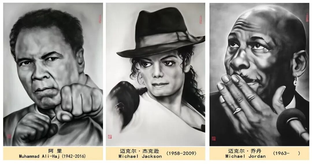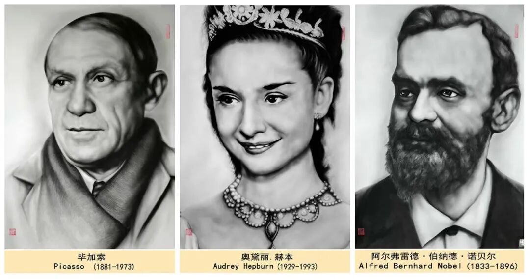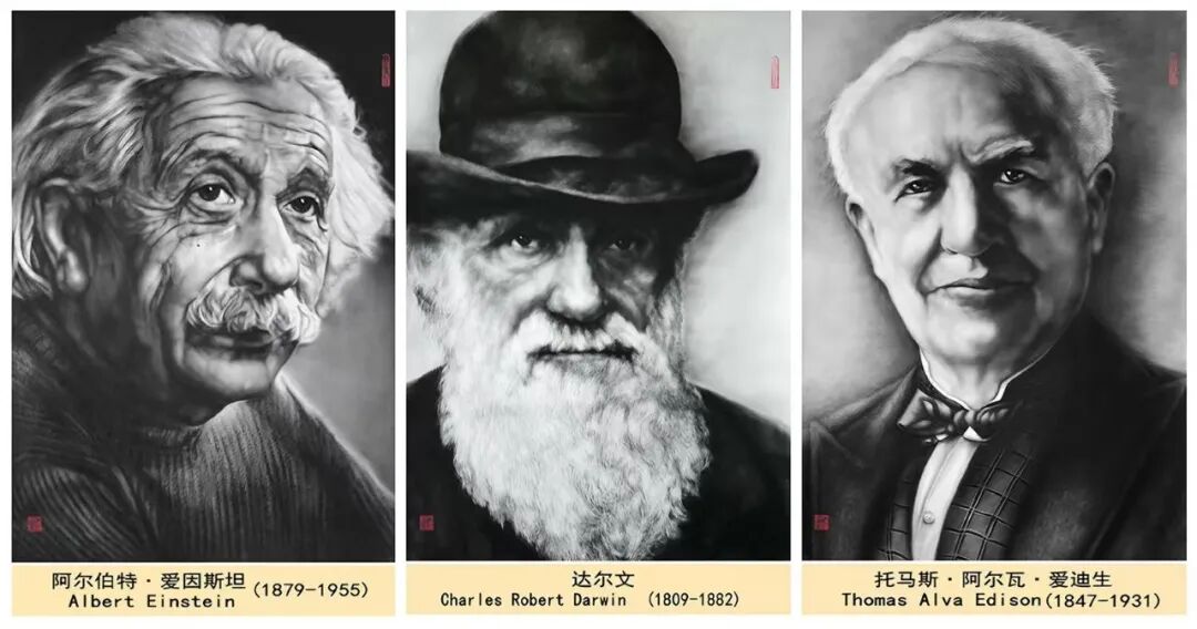 從三米巨制的《齊白石》《張大千》,到細(xì)膩入微的《抗日英烈》《兩彈一星元勛》;從至圣先師《孔子行教》到救死扶傷的《古代名醫(yī)》;從《世界名人》的深邃目光到《共和國脊梁》的堅(jiān)定神情——他的作品譜系,就是一部視覺化的《人類群星閃耀時(shí)》。