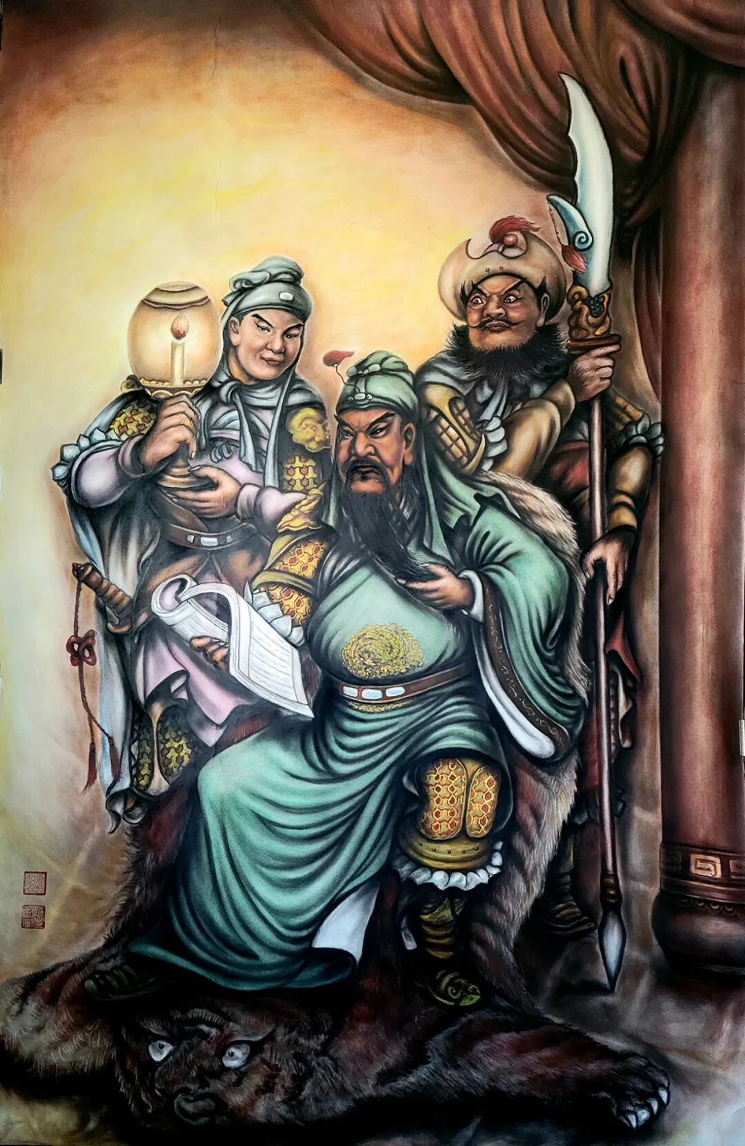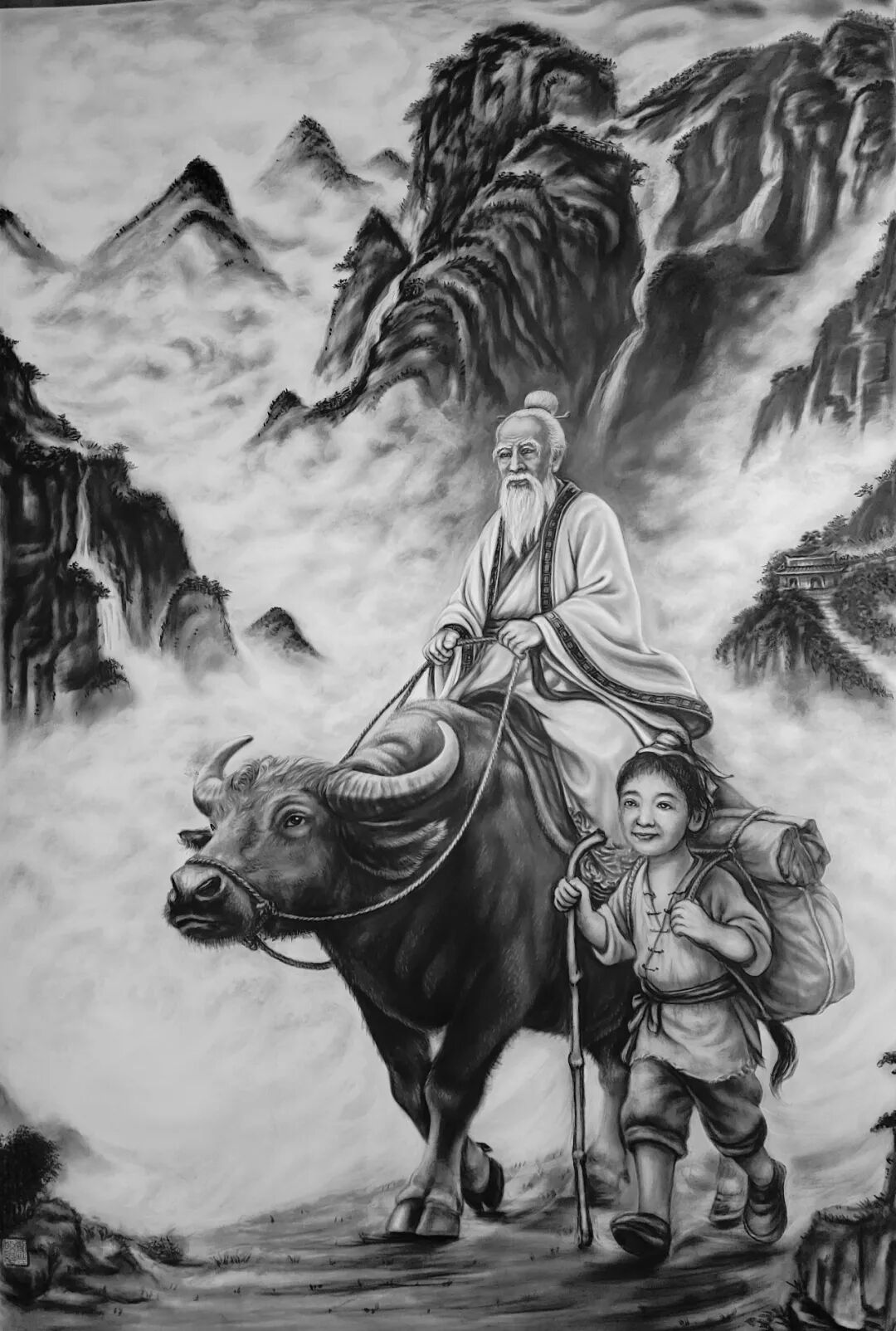 張松柏的筆下,有金石的鏗鏘,那是英雄的錚錚鐵骨;有絲綢的靈動,那是智者的悲憫柔情。他沿著顧愷之、吳道子、徐悲鴻、蔣兆和等歷代大師的足跡,卻走出了一條全新的康莊大道。他不滿足于形似,而是提煉人物在不同時(shí)代的 “神靈再現(xiàn)” 。無論是遠(yuǎn)觀其勢,還是近觀其質(zhì),那超越攝影、超越油畫的細(xì)膩質(zhì)感,讓觀者無不屏息凝神,仿佛在與畫中人隔世相望 。