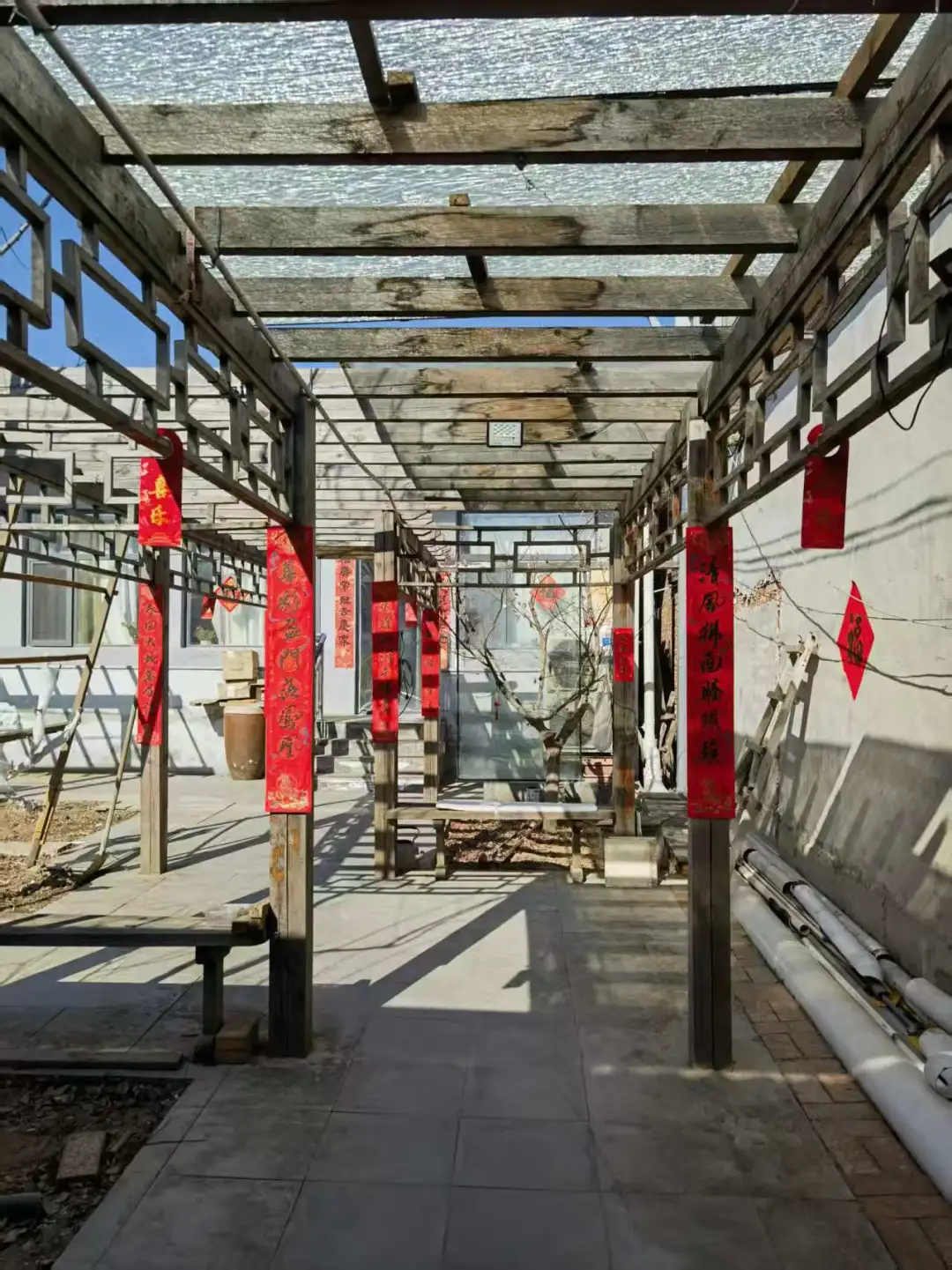 貼春聯(lián)不能含糊,“總把新桃換舊符”嘛。節(jié)前在校工會(huì)寫、院里寫,給朋友寫、同事寫,終于輪到自家:好辦,和三弟一起寫。三弟打了一鍋糨子,為便于來年清理,用白面和玉米面混合以降低粘接力。還沒貼呢,三弟睡覺去了,妹妹和外甥勇挑重?fù)?dān)??墒歉W謱?duì)聯(lián)條幅等太多糨子居然不夠,二弟又用玉米面加黏面補(bǔ)充了些。貼完了一看,滿院紅紅火火,過大年氣氛拉滿夯爆了。照片發(fā)到群里,涵涵老師點(diǎn)贊“對(duì)聯(lián)長(zhǎng)廊,這是個(gè)展呀JJ”