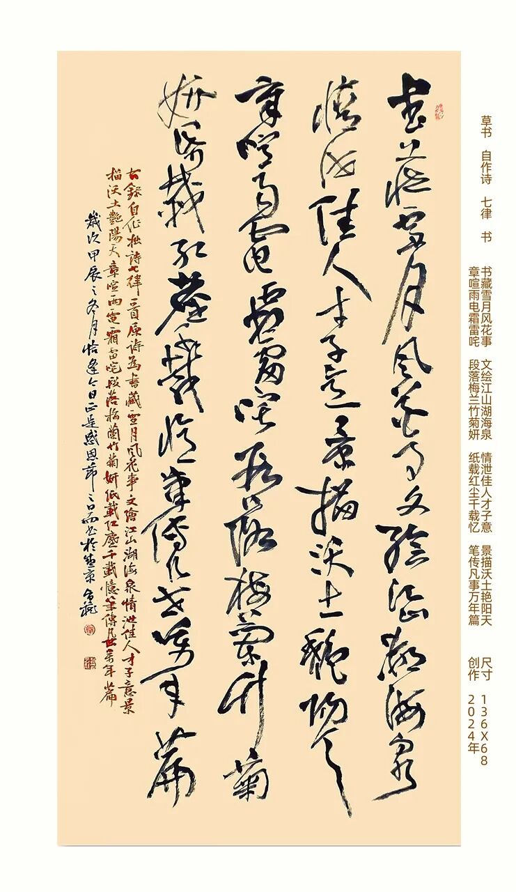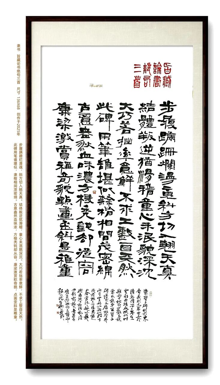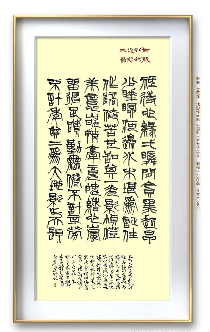 我始終把書法與文學(xué)視為藝術(shù)的功課來做,同時,還要汲取音樂、美術(shù)、攝影、哲學(xué)等藝術(shù)營養(yǎng),開闊思路,博采眾長,為我所用。創(chuàng)作時理解詩文之含義,內(nèi)容形式的把握與意念之融合。