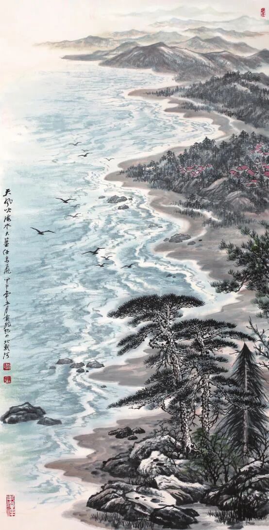 古人言:讀萬卷書,行萬里路。又日:外師造化,中得心源。謝秉均曾遍訪祖國的名山大川,也游遍臺灣的山山水水,他在2009年創(chuàng)作了《和諧盛世圖》(手稿),此畫涵蓋了全國三十幾個省市自治區(qū)的山川美景,完成后將長達百米以上。近期又創(chuàng)作了系列寫生畫作,他的畫既有傳統(tǒng)筆墨而又能反映時代精神。