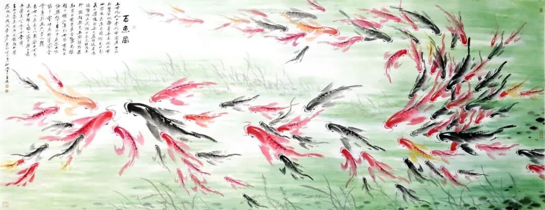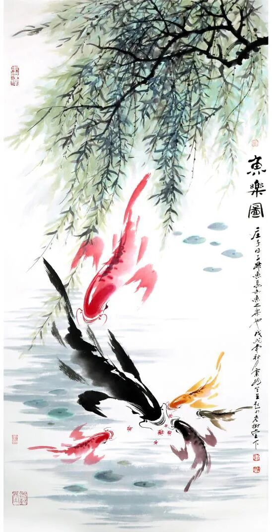 謝秉均愛魚、寫魚,源于偶然。十多年前寓居臺北市外雙溪,住家對面是臺北故宮博物院。其每日晨練必去故宮小廣場,下山經過至善園,園內有錦鯉暢游其間,從此每日觀察,必至入微,幾乎到了癡迷的程度。以后便一發(fā)不可收拾,從魚的結構到魚的動態(tài),了若指掌,每日創(chuàng)作直到滿意為止。謝秉鈞從小喜愛小動物,包括小貓、小狗、兔子、小雞,乃至烏龜、青蛙、金魚……特別是錦鯉更是情有獨鐘。其筆下的鯉魚,一尾尾活靈活現,躍然紙上,他畫的魚,可以不用線條,而全憑色與墨的濃淡干濕,一揮而就。有人評論說:“謝秉均畫的魚筆墨簡練,用筆大膽、潑辣,然而能表現出魚的精神與動態(tài),開創(chuàng)了魚畫的全新一派畫風。”他于2011年從臺灣來大陸參加辛亥百年兩岸名家書畫雅集活動,其創(chuàng)作的一幅《六順圖》以二十七萬元人民幣的價格被收藏家收藏,其將全部款項捐助慈善事業(yè)。