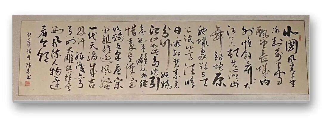 韓森的書(shū)法藝術(shù),與山水畫(huà)一脈相承,同樣浸潤(rùn)著“樂(lè)靜”之氣。其書(shū)取法傳統(tǒng),兼收諸家之長(zhǎng),筆法沉穩(wěn)靈動(dòng),結(jié)體疏密有致,墨色濃淡相宜??瑫?shū)端莊古雅,筋骨內(nèi)斂;行書(shū)流暢自然,氣韻貫通,無(wú)刻意雕琢之態(tài),有渾然天成之韻。筆墨間既有文人的淡泊寧?kù)o,又有燕趙兒女的豪邁氣象,將書(shū)畫(huà)同源的精髓融入筆端,字里行間盡顯其深厚的藝術(shù)積淀與澄澈的精神境界,與山水畫(huà)作相得益彰,自成一格。