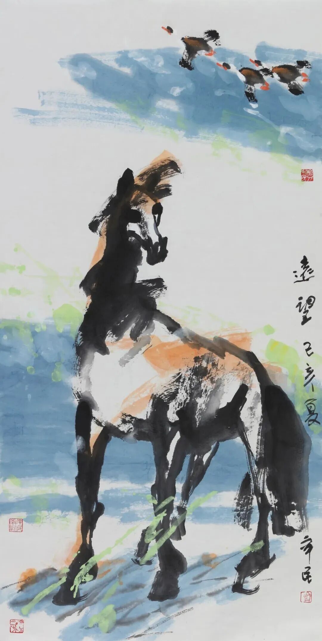 中國畫“妙在似與不似之間”——齊白石作畫的美學(xué)追求,被后世奉為中國畫創(chuàng)作之圭臬。然近現(xiàn)代以前中國畫之“馬”皆在求“似”上殫精竭力、各顯神通,即便是徐悲鴻筆下的“奔馬”也未脫離求“似”的藝術(shù)表現(xiàn)范疇。此外,自20世紀(jì)至今,雖有西方畫論如“印象”“解構(gòu)”“立體”“觀念”等諸多思想無不影響著中國畫的發(fā)展,畫馬者亦因此而多方求索——或中西融合,或重開爐灶,凡此種種的努力和嘗試并未有大突破和令人心悅神暢的創(chuàng)新。