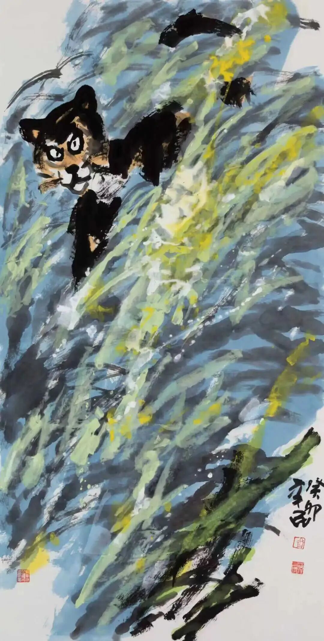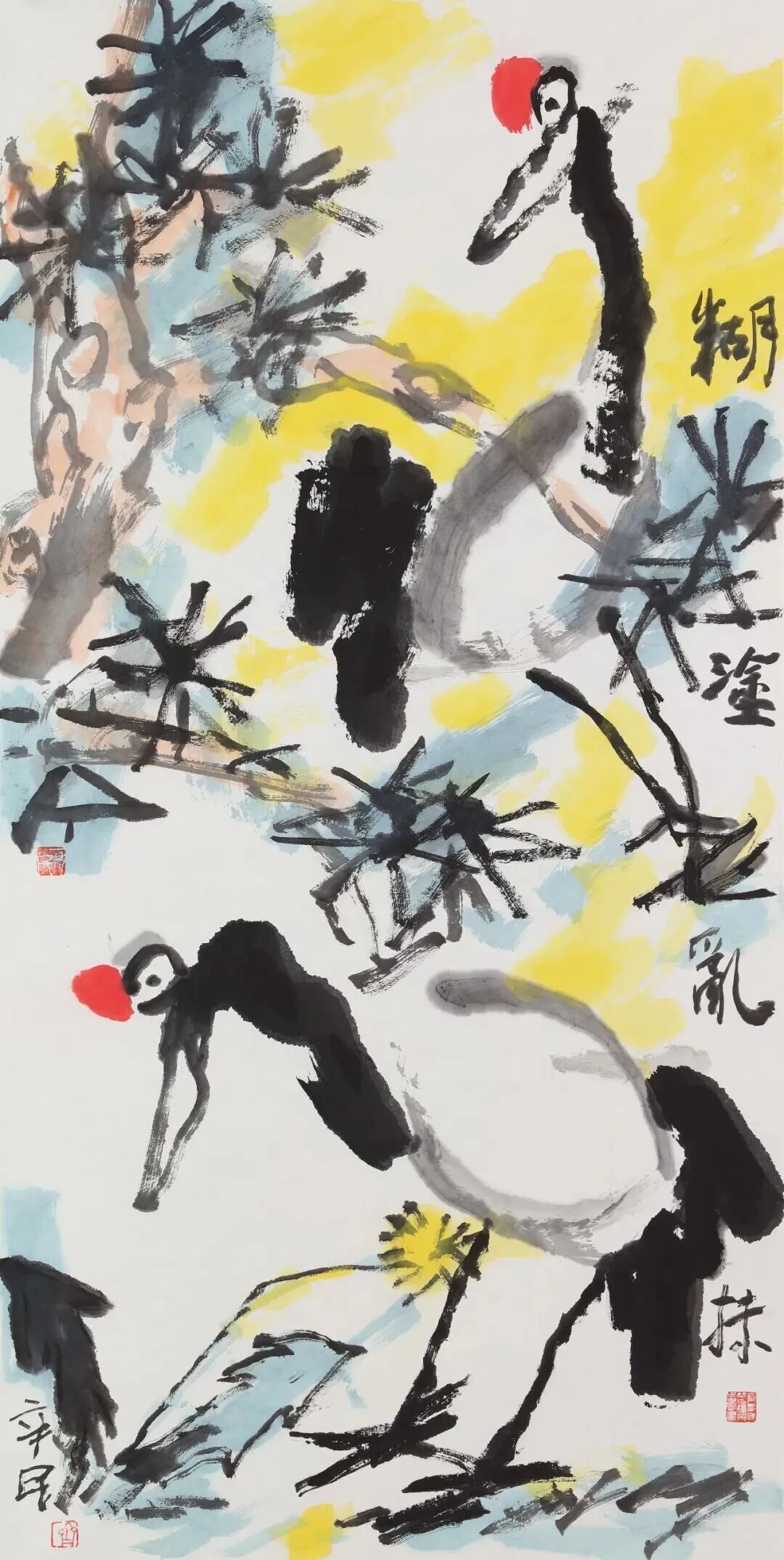 這并非鄙人的大膽溢美之評(píng),而是基于兩點(diǎn)粗淺認(rèn)知。其一,馬之造型一改前人求“似”的創(chuàng)作傳統(tǒng),而轉(zhuǎn)向當(dāng)代夢(mèng)寐以求“不似”的突破這不僅豐富了國內(nèi)外畫壇表現(xiàn)“馬”的藝術(shù)語言,而且其藝術(shù)創(chuàng)作的超前性、實(shí)踐成果的意義和價(jià)值點(diǎn)目前來看也是無出其右的;更令人敬佩的是,已逾鮐背之年的藝術(shù)家在衰年變法過程中所展現(xiàn)出的開拓精神、創(chuàng)新魄力,可望近現(xiàn)代大家黃賓虹、齊白石諸賢之項(xiàng)背。其二,馬之色彩運(yùn)用得當(dāng),既基于“齊家樣”的明麗鮮亮又盡顯當(dāng)代審美之風(fēng)尚,讓其創(chuàng)作雅俗共賞;而在創(chuàng)作中藝術(shù)家展現(xiàn)出融匯中西、盡取諸法的開闊視野和博大胸襟,則獲得了中外畫壇的盛贊。
