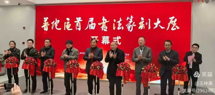 在熱烈的掌聲中丁申陽(yáng)主席與相關(guān)領(lǐng)導(dǎo)共同上臺(tái)為展覽啟幕。