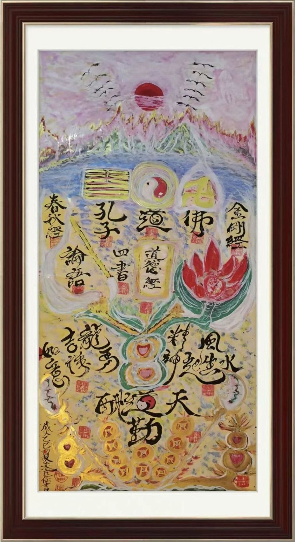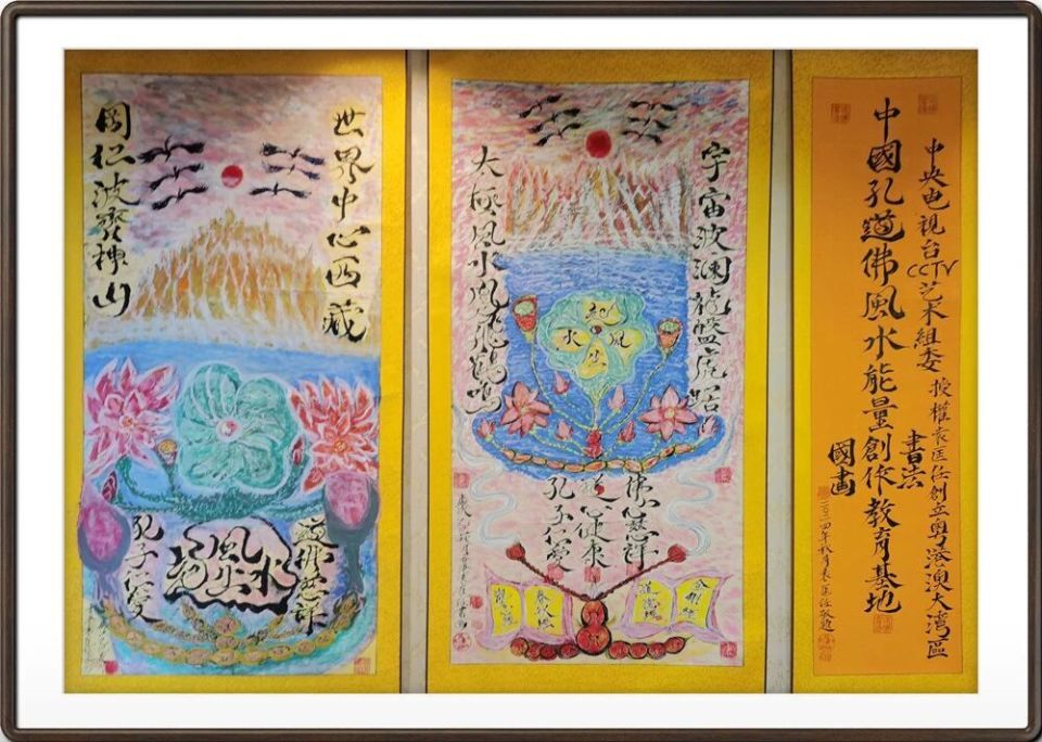 袁匡任三博士之孔道佛風(fēng)水圖騰能量書法,創(chuàng)作教育基地,作品分九類: