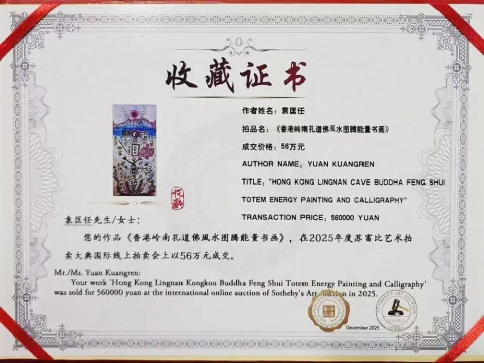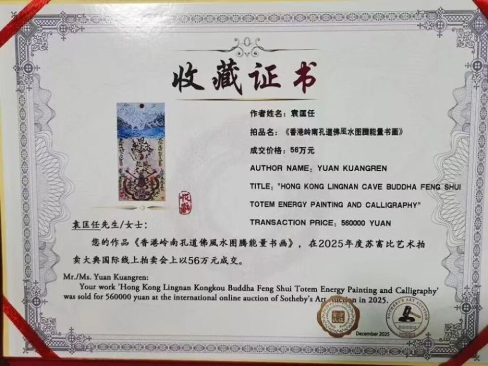 世界非物質(zhì)文化遺產(chǎn)研究院院士、中央電視臺(tái)CCTV 藝術(shù)組委會(huì) 授權(quán)袁匡任創(chuàng)立香港大灣區(qū)中國(guó)孔道佛風(fēng)水能量書法創(chuàng)作教育基地。