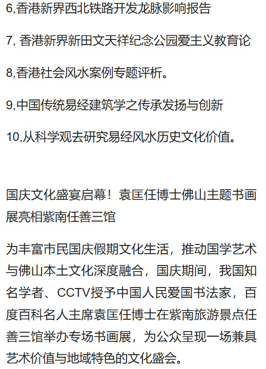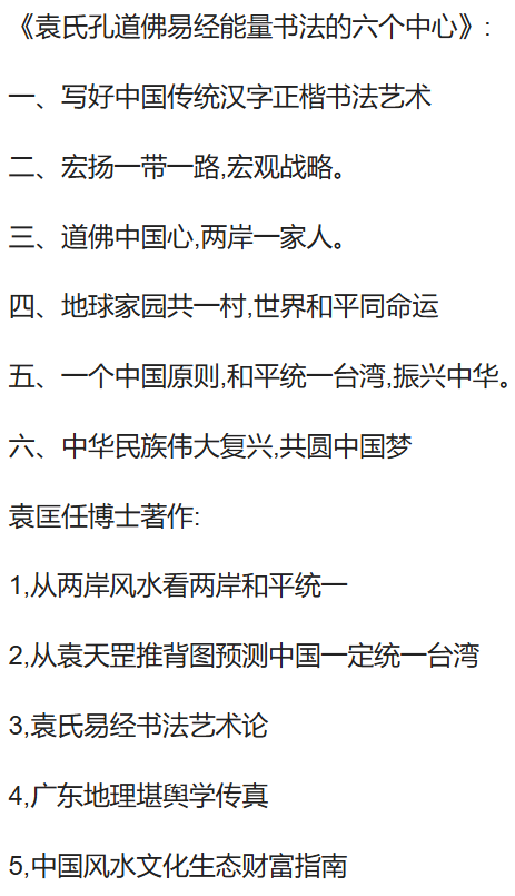 三,袁天罡風(fēng)水道符能量書法創(chuàng)作教育基地四,中國(guó)金融風(fēng)水能量書法創(chuàng)作教育基地五,中國(guó)太極風(fēng)水能量書法創(chuàng)作教育基地六,中國(guó)孔道佛風(fēng)水能量書法創(chuàng)作教育基地七,中國(guó)愛國(guó)人民藝術(shù)家書法創(chuàng)作教育基地八,香港袁天罡推背圖風(fēng)水研究院