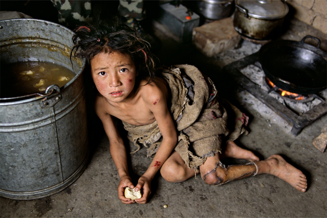 戰(zhàn)友多吉介紹說,這是附近一個(gè)頭人家的孤兒,父母都是頭人家的農(nóng)奴,一家三口就住在主人家樓下的牲口圈里。父親原本身材高大,后被主人家取了一條腳上的脛骨作佛堂的法器,成了瘸子,外出當(dāng)差死在了外面,母親也被頭人賣了,今年才回來。西藏叛亂后,他家主人跟達(dá)賴跑了,家里就是一個(gè)管家。小農(nóng)奴太小又是女娃,有一次,到河邊去背水又累又餓把水桶摔壞了,管家就把她毒打了一頓,把一條腿打斷了,趕了出來…