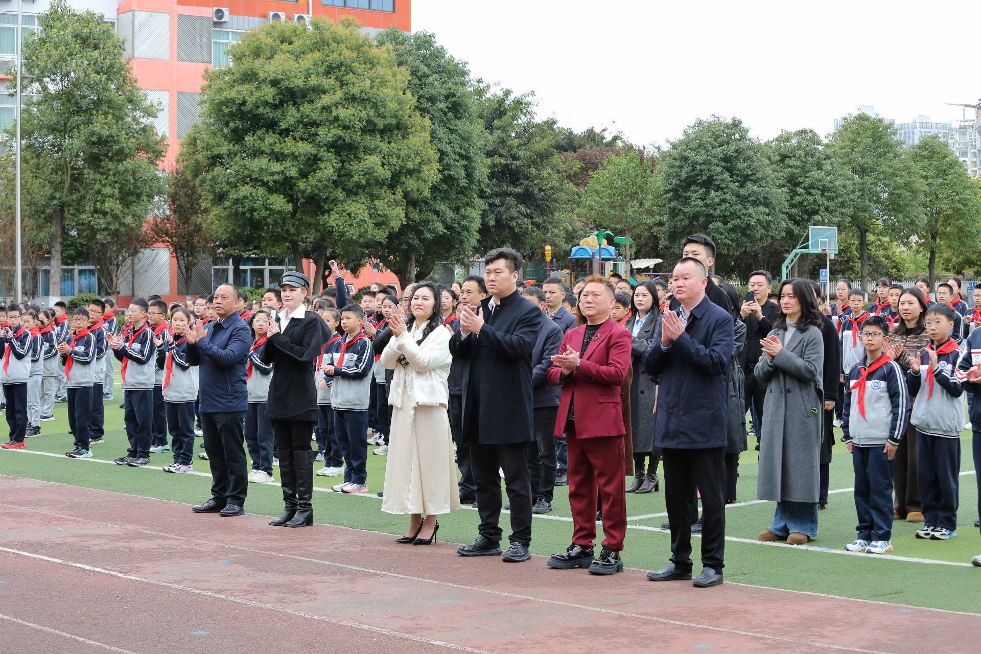活動(dòng)現(xiàn)場(chǎng)首先舉行了升旗儀式。全體人員面向旗臺(tái)升國(guó)旗、奏唱國(guó)歌,少先隊(duì)員行隊(duì)禮,其他人員行注目禮。