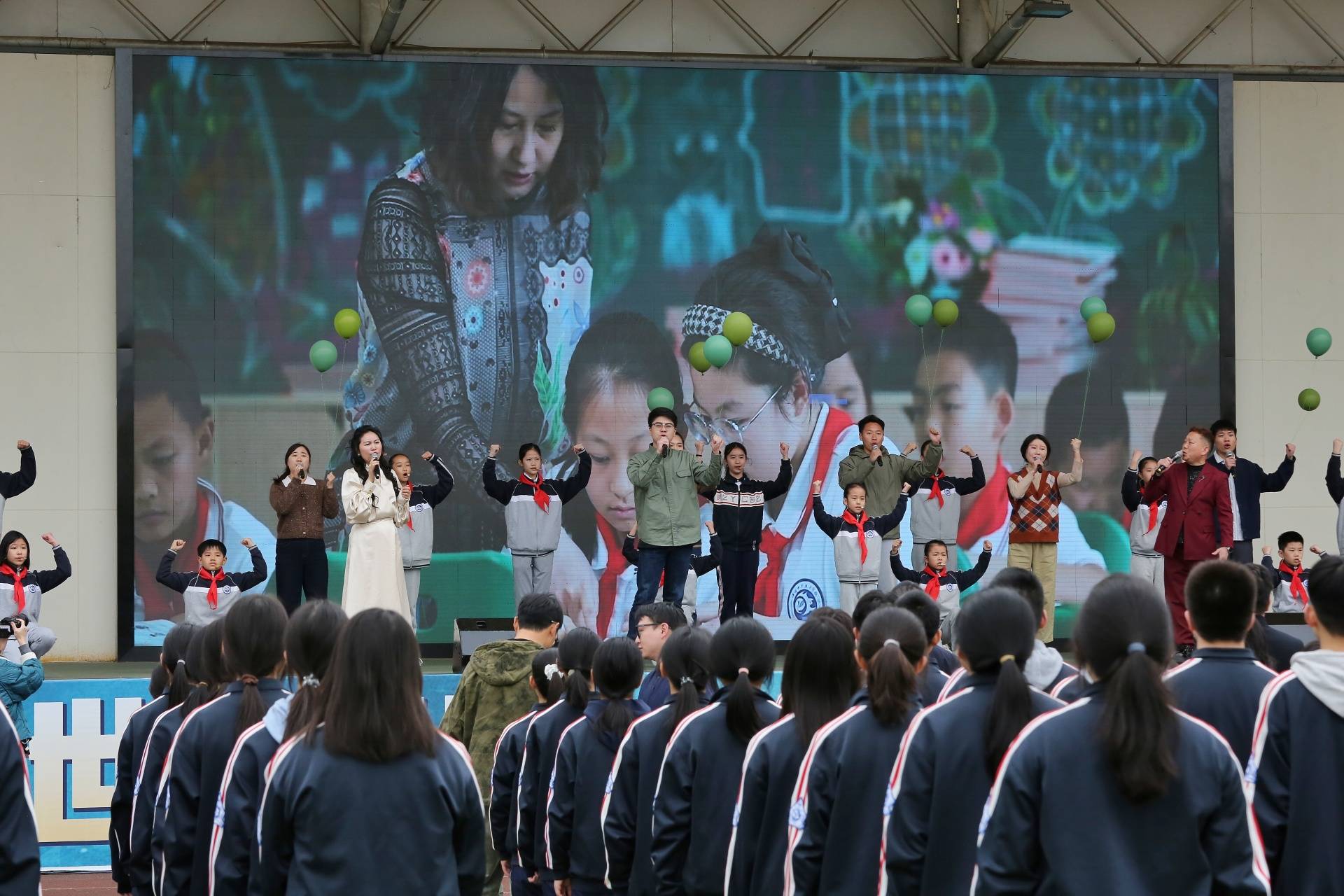 隨后,王迪演唱《就戀這片熱土》,抒發(fā)家國(guó)情懷。楊蔓利、王迪與師生共同演繹《感恩的心》,表達(dá)對(duì)和平生活的感恩之情。